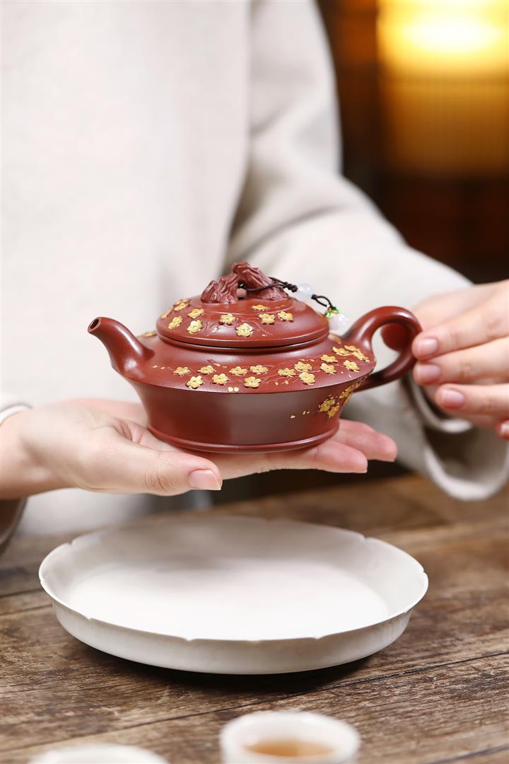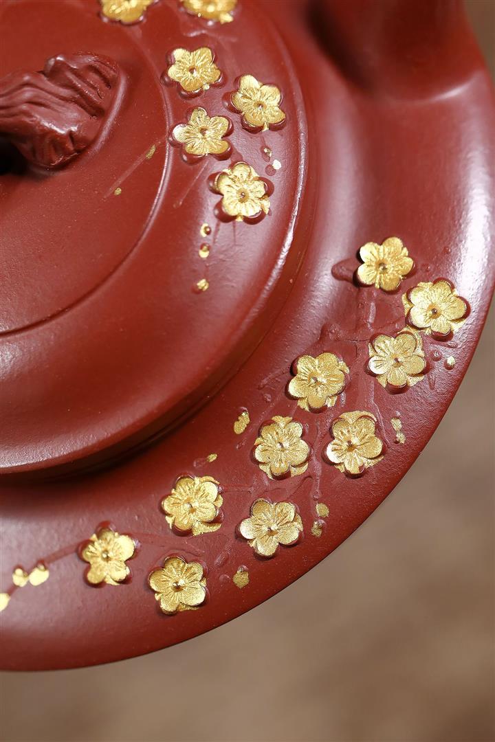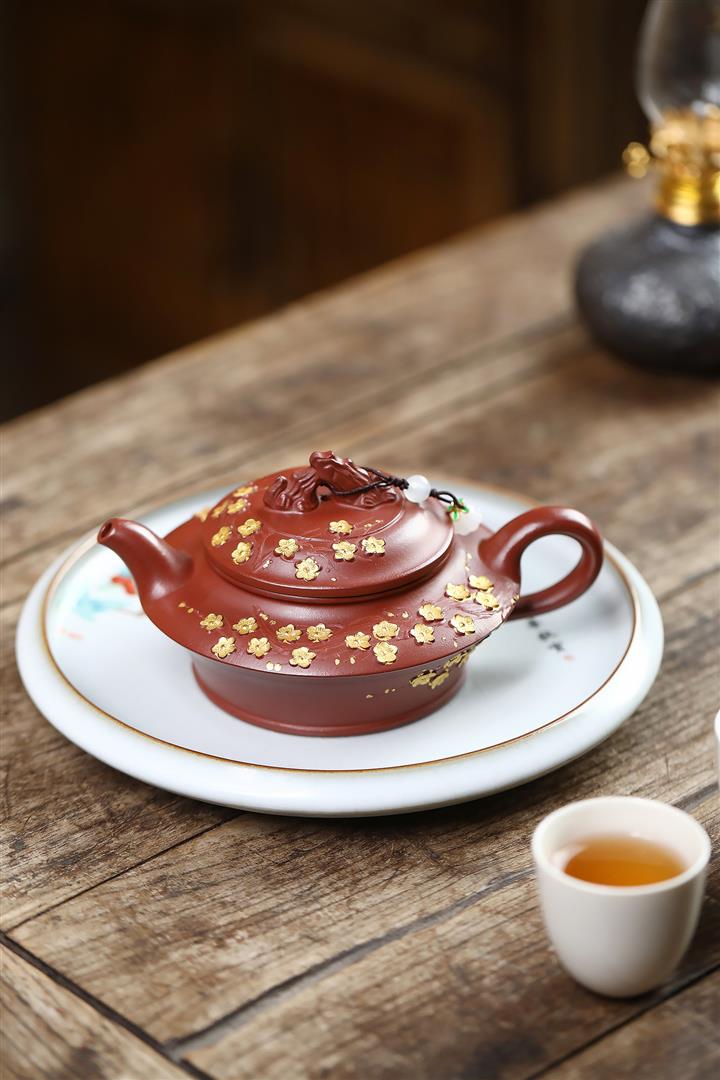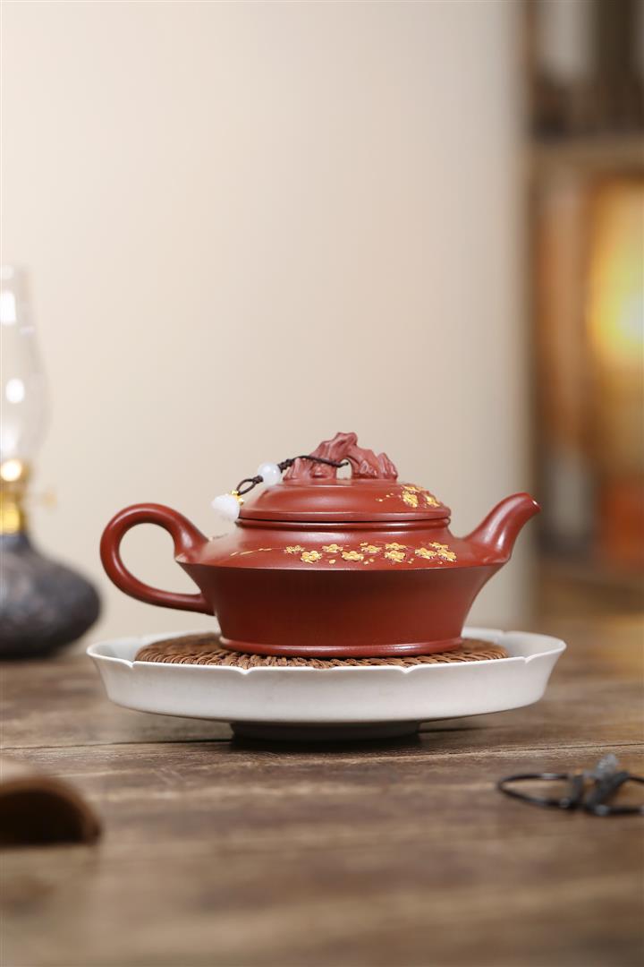 280cc原礦大紅袍堆繪金梅秦權泡茶壺POT9695