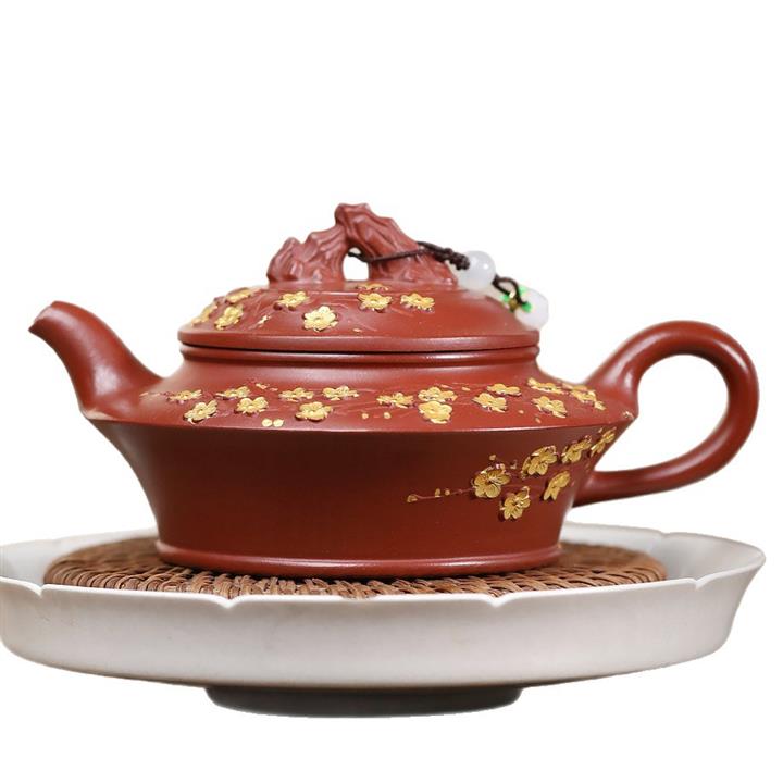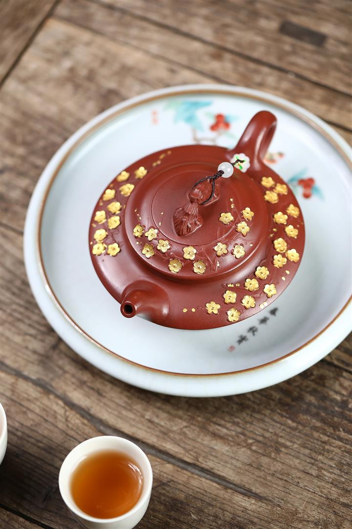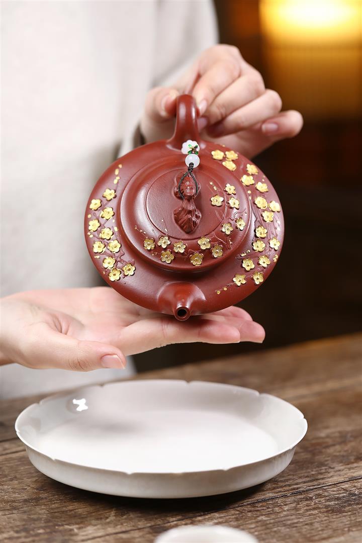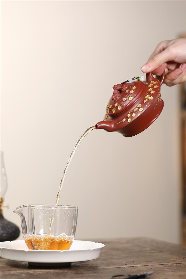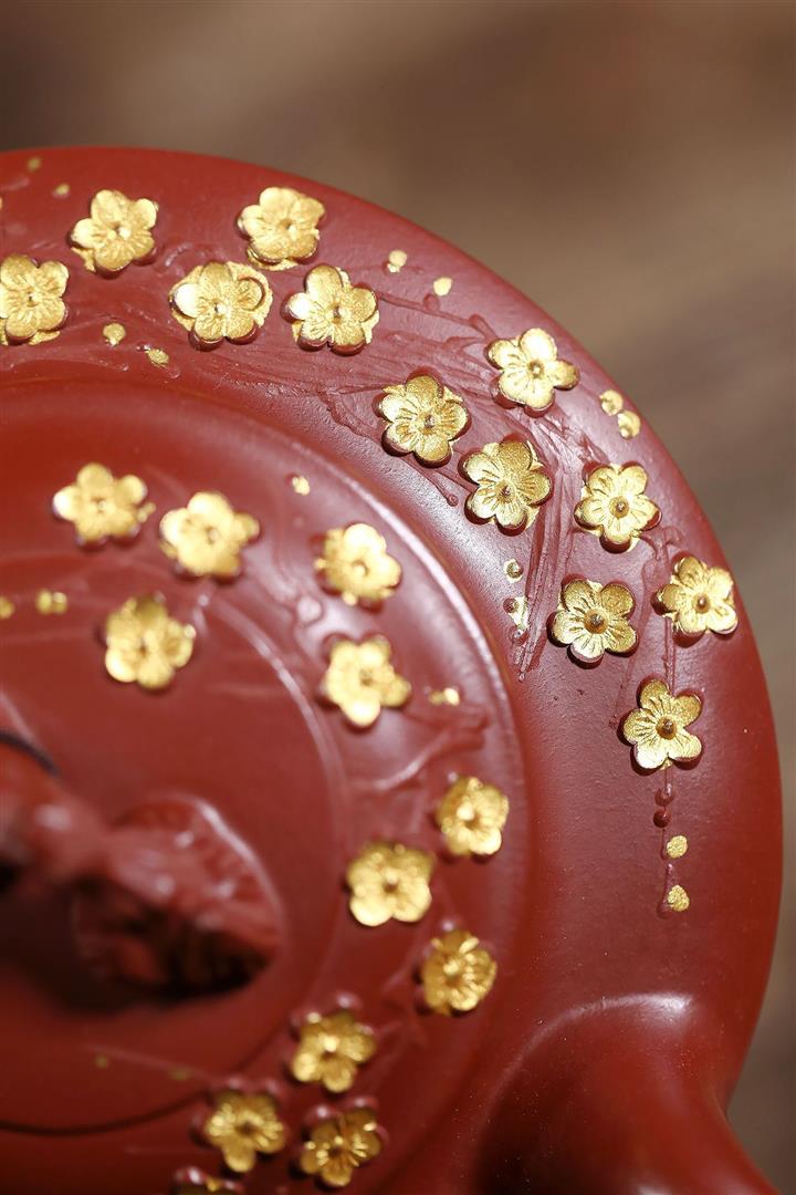 280cc原礦大紅袍堆繪金梅秦權泡茶壺POT9695