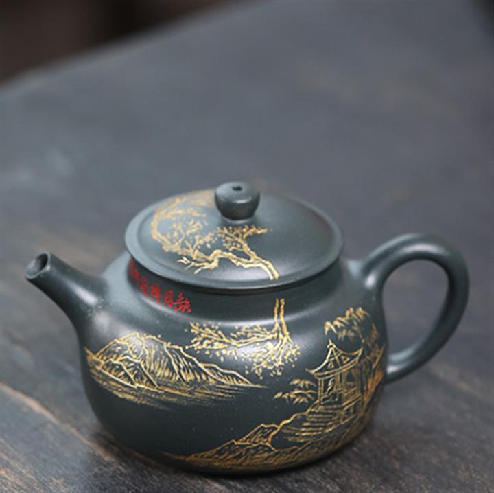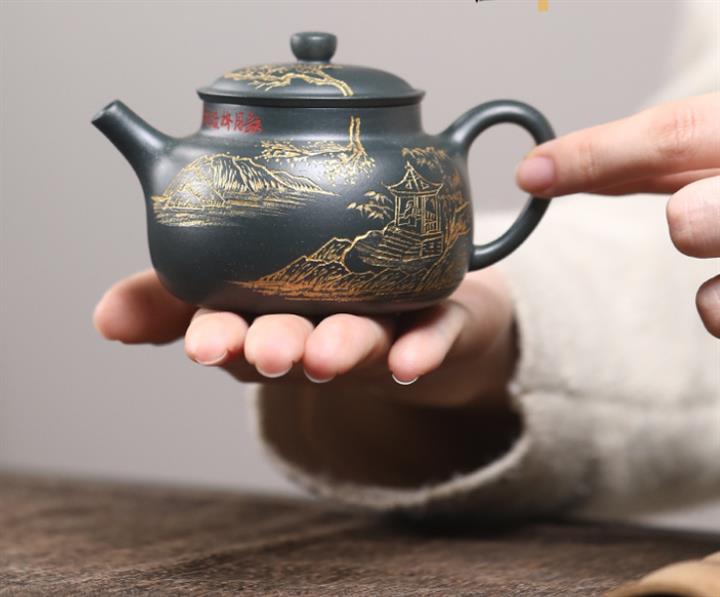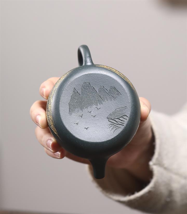 180cc原礦黑泥刻繪觀雲聽雨泡茶壺POT9716
