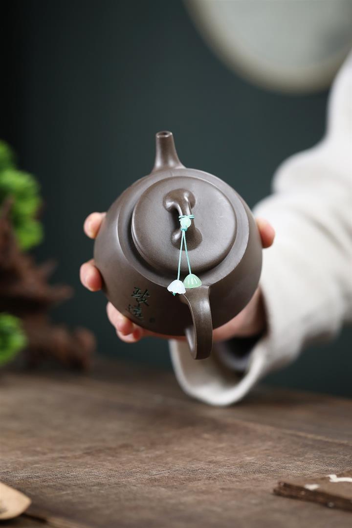 【作品介紹】此款壺形線條流暢,壺把,壺嘴,壺身壹氣呵成栩栩如生,是收藏把玩的好壺,泥料色澤古樸典雅,日久使用,漸露鋒芒,養成變化快,溫潤莊重,用其泡茶,使用的年代久,壺身就溫潤,泡出來的茶湯也就醇郁芳馨。