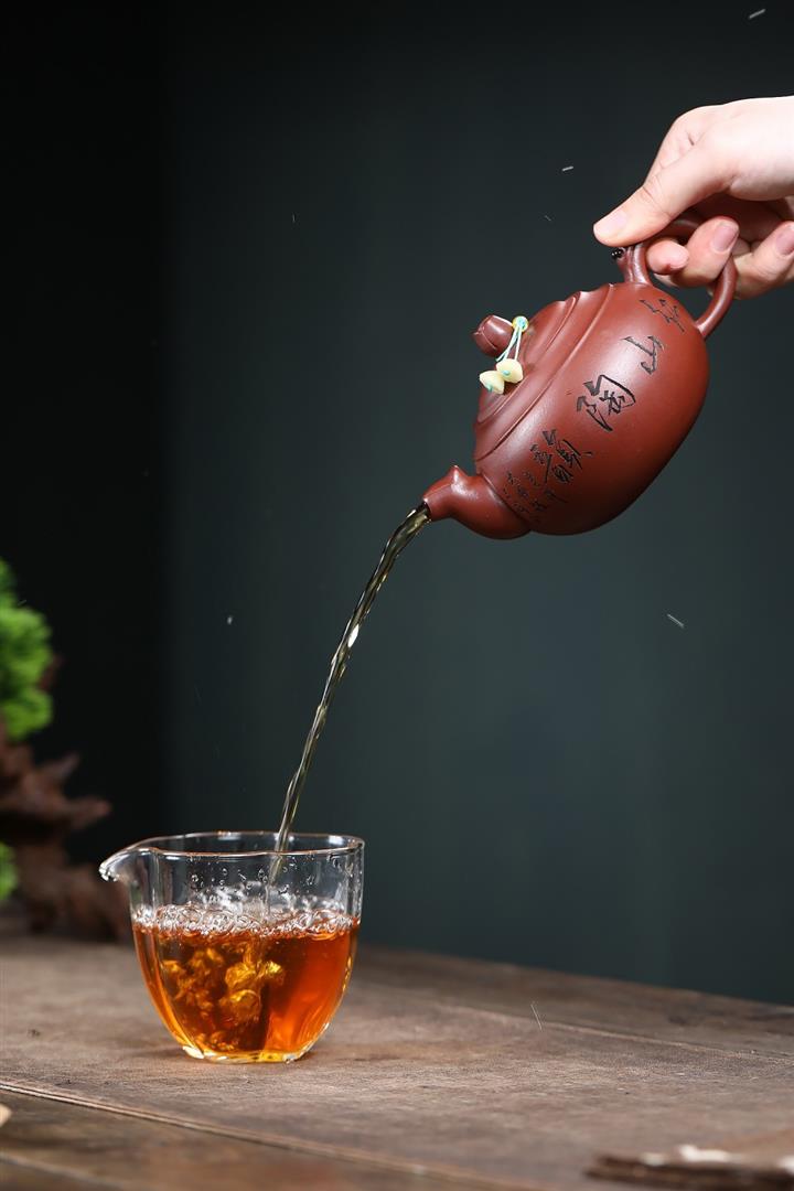 【泥料特點】砂土氣重,似淳實農民,日久使用,漸露鋒芒,養成變化,溫潤莊重。紫砂是壹種雙重氣孔結構的多孔性材質,氣孔微細,密度高。用紫砂壺沏茶,不失原味,且香不渙散,得茶之真香真味。紫砂使用越久,壺身色澤越發光亮照人,氣韻溫雅。紫砂壺長久使用器身會因撫摸擦拭,變得越發溫潤光澤。