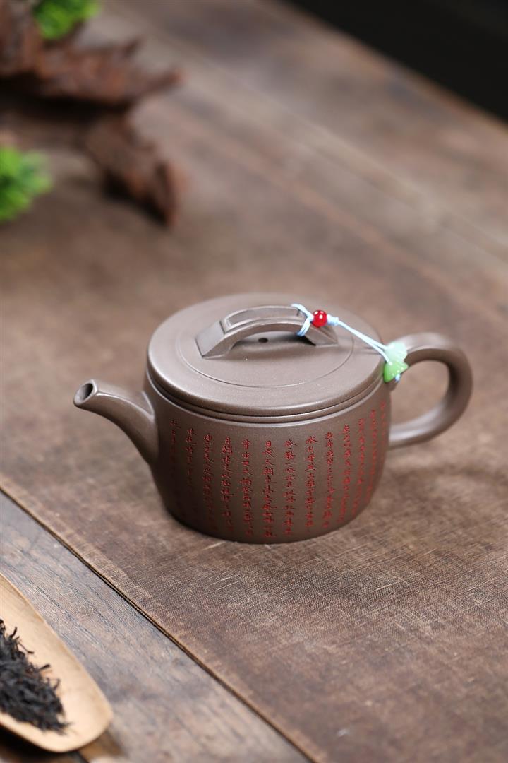180cc原礦黑泥刻繪觀雲聽雨泡茶壺POT9716