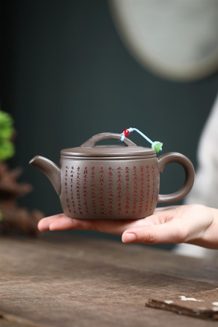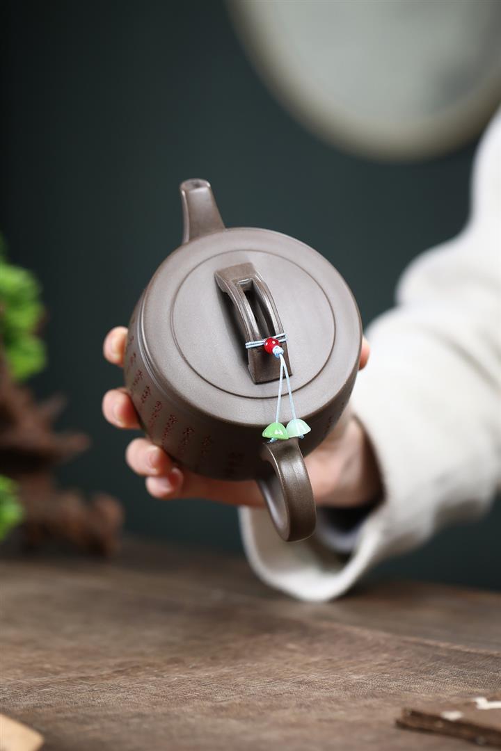 【作品介紹】此款壺形線條流暢,壺把,壺嘴,壺身壹氣呵成栩栩如生,是收藏把玩的好壺,泥料色澤古樸典雅,日久使用,漸露鋒芒,養成變化快,溫潤莊重,用其泡茶,使用的年代久,壺身就溫潤,泡出來的茶湯也就醇郁芳馨。