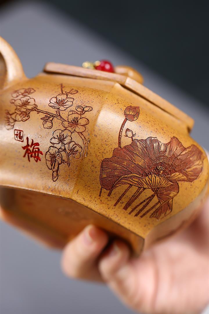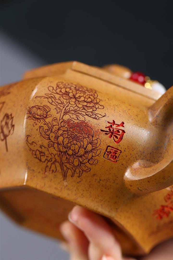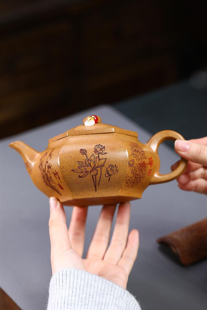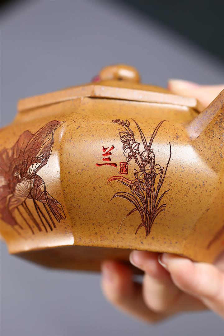 【作品介紹】此款壺形線條流暢,壺把,壺嘴,壺身壹氣呵成栩栩如生,是收藏把玩的好壺,泥料色澤古樸典雅,日久使用,漸露鋒芒,養成變化快,溫潤莊重,用其泡茶,使用的年代久,壺身就溫潤,泡出來的茶湯也就醇郁芳馨。