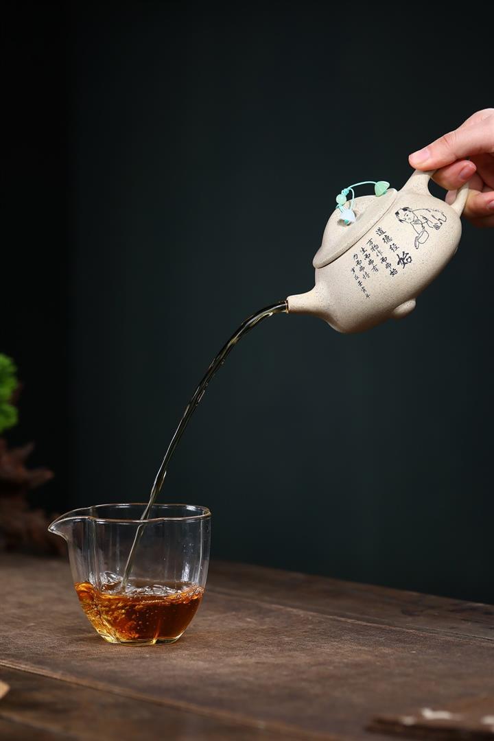 【泥料特點】砂土氣重,似淳實農民,日久使用,漸露鋒芒,養成變化,溫潤莊重。紫砂是壹種雙重氣孔結構的多孔性材質,氣孔微細,密度高。用紫砂壺沏茶,不失原味,且香不渙散,得茶之真香真味。紫砂使用越久,壺身色澤越發光亮照人,氣韻溫雅。紫砂壺長久使用器身會因撫摸擦拭,變得越發溫潤光澤。