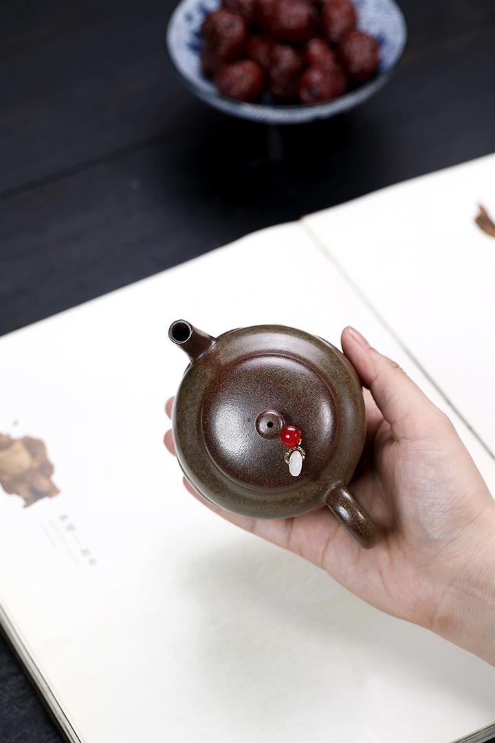 【泥料特點】砂土氣重,似淳實農民,日久使用,漸露鋒芒,養成變化,溫潤莊重。紫砂是壹種雙重氣孔結構的多孔性材質,氣孔微細,密度高。用紫砂壺沏茶,不失原味,且香不渙散,得茶之真香真味。紫砂使用越久,壺身色澤越發光亮照人,氣韻溫雅。紫砂壺長久使用器身會因撫摸擦拭,變得越發溫潤光澤。