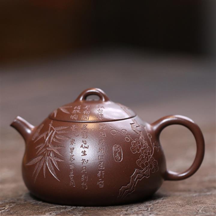135cc原礦某革紫泥冬心秦權梅竹文旦泡茶壺POT9728