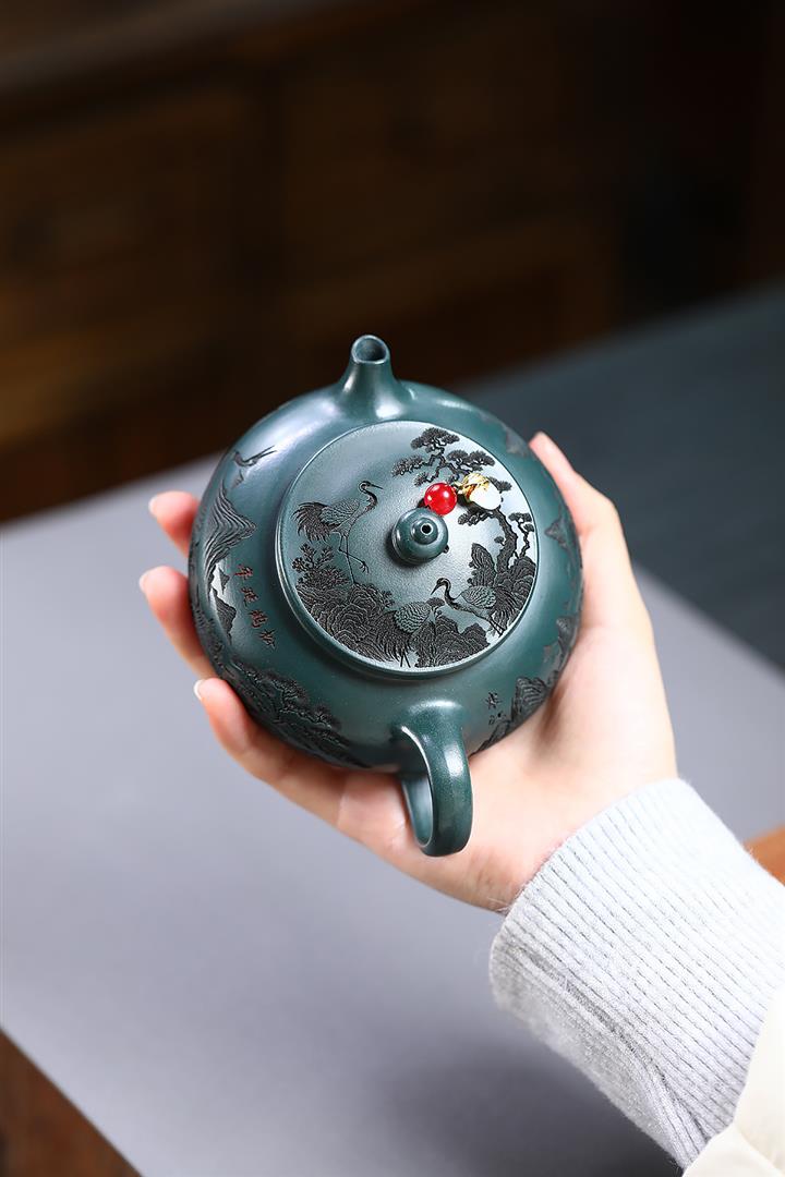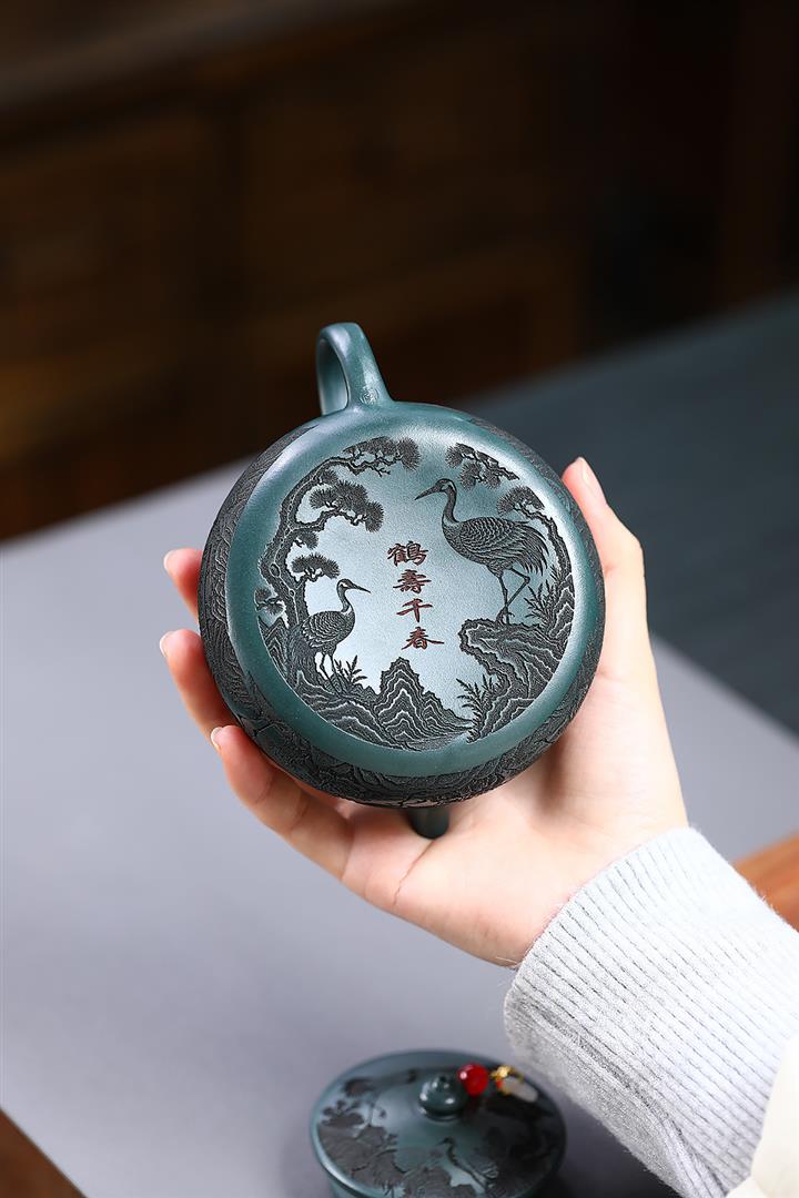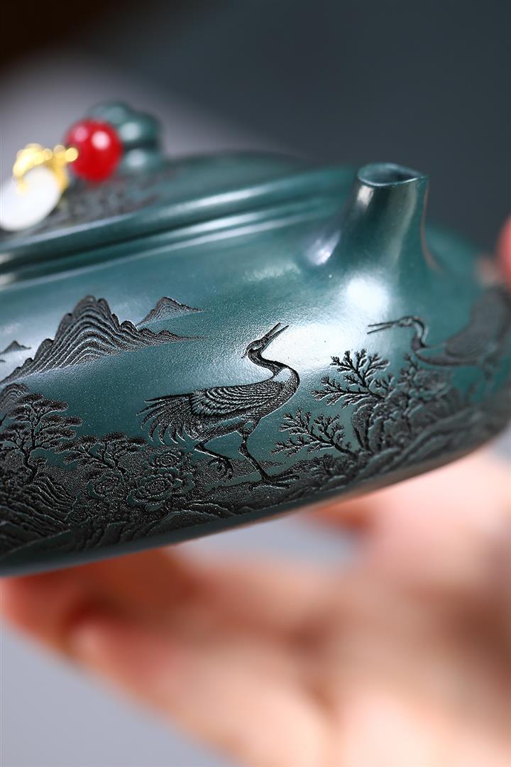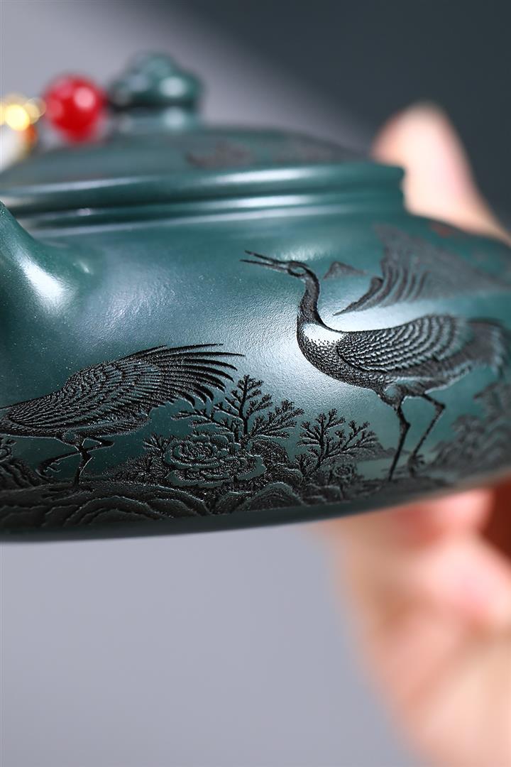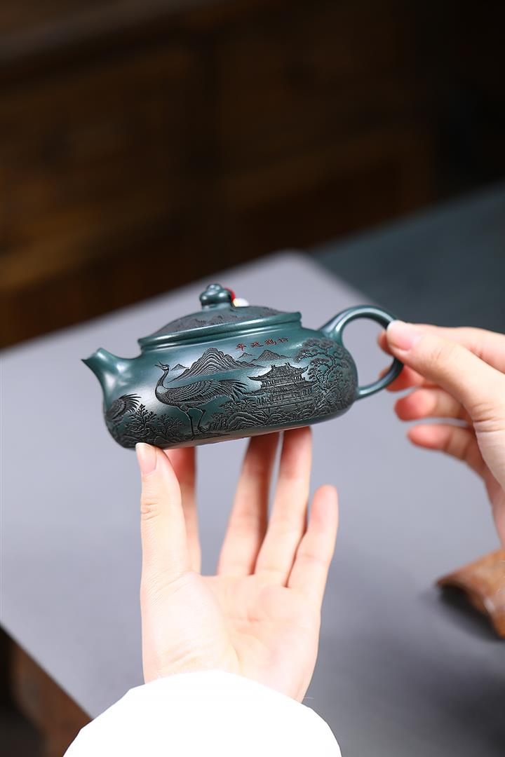 230cc原礦墨綠泥仙鶴寒江泡茶壺POT9725