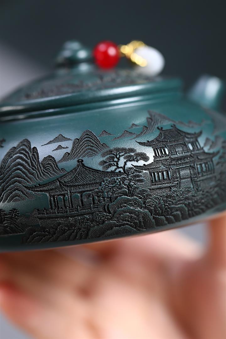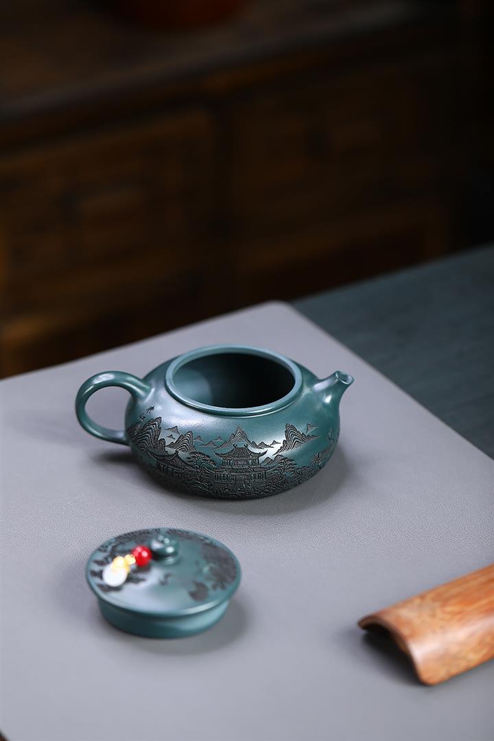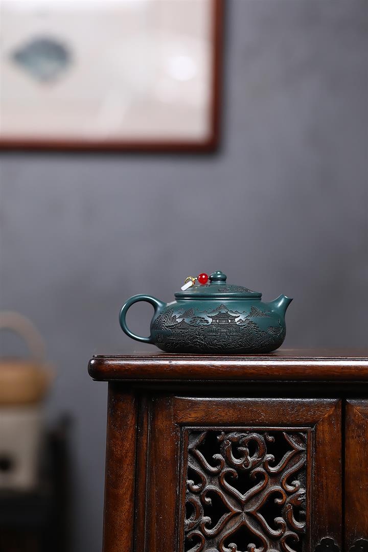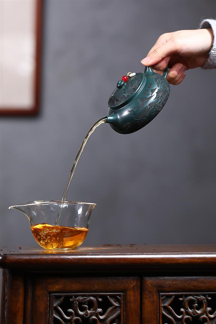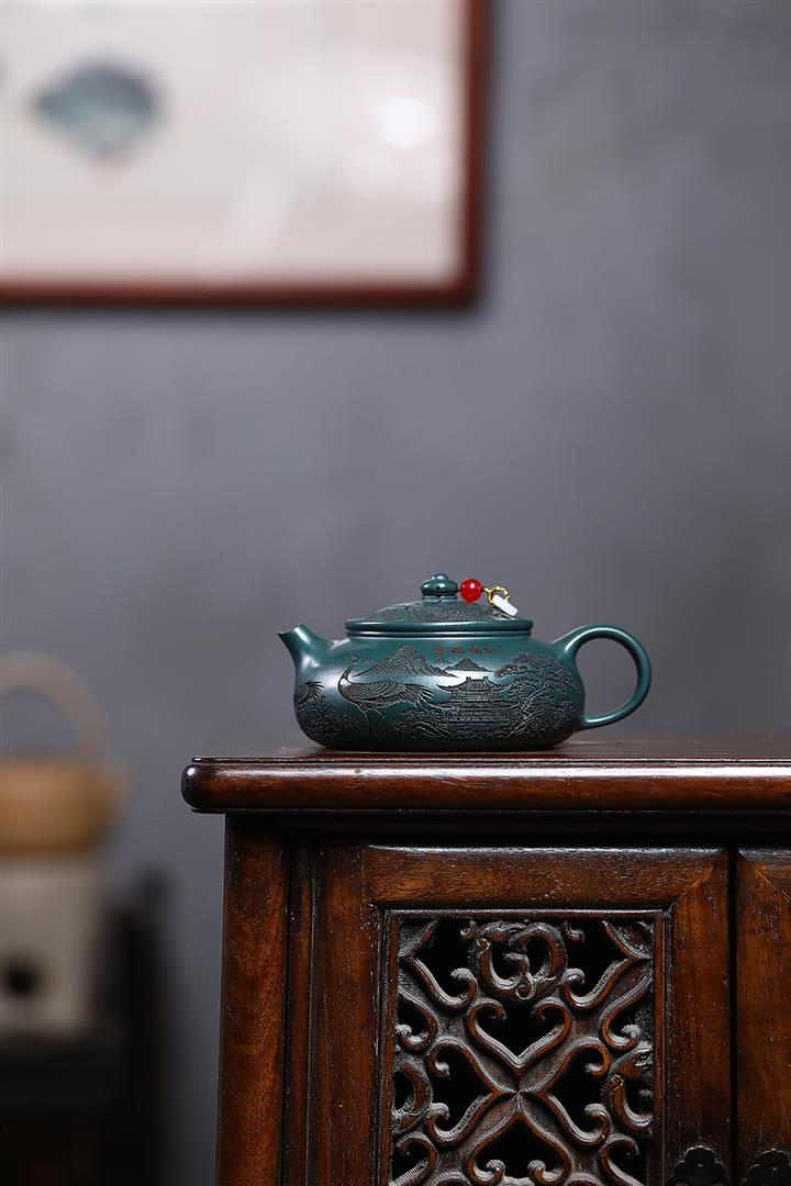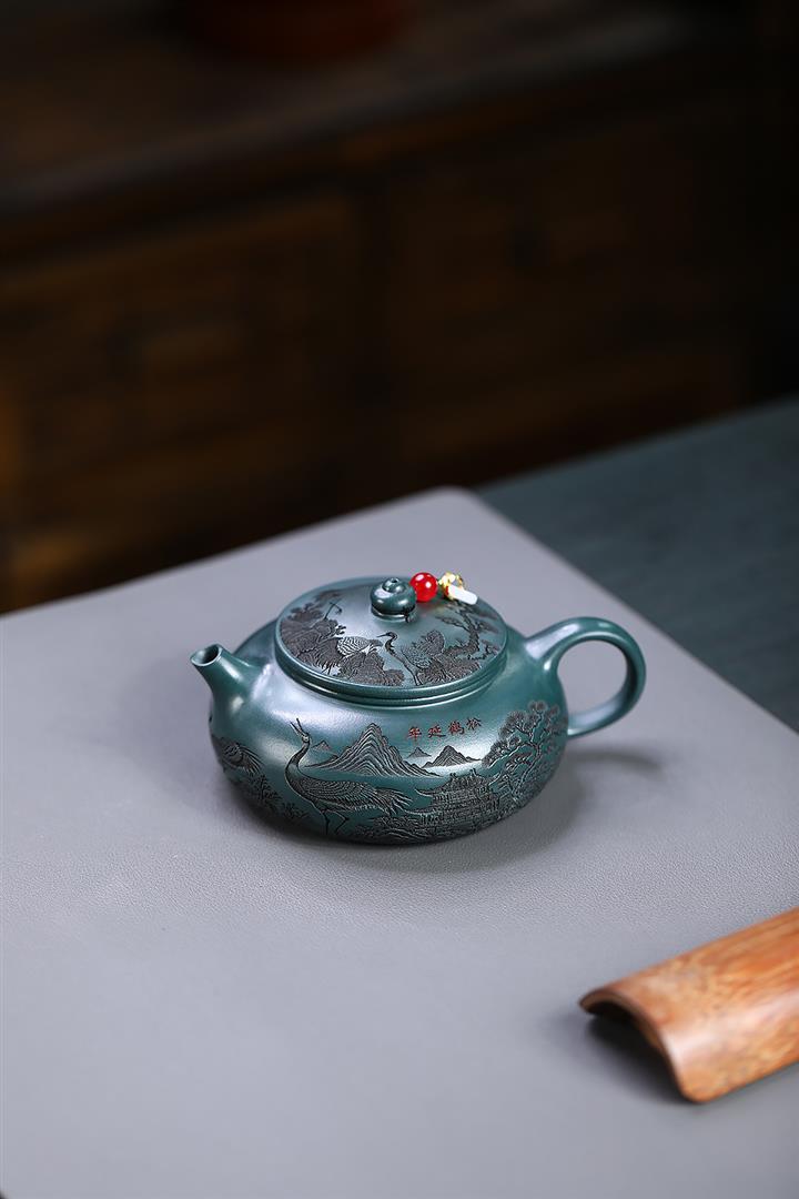 230cc原礦墨綠泥仙鶴寒江泡茶壺POT9725
