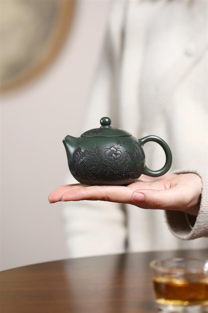 160cc原礦墨綠泥牡丹西施泡茶壺POT9735