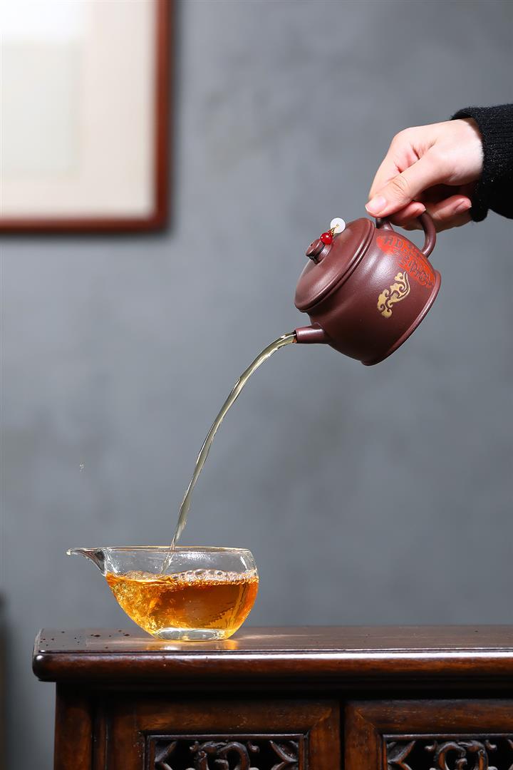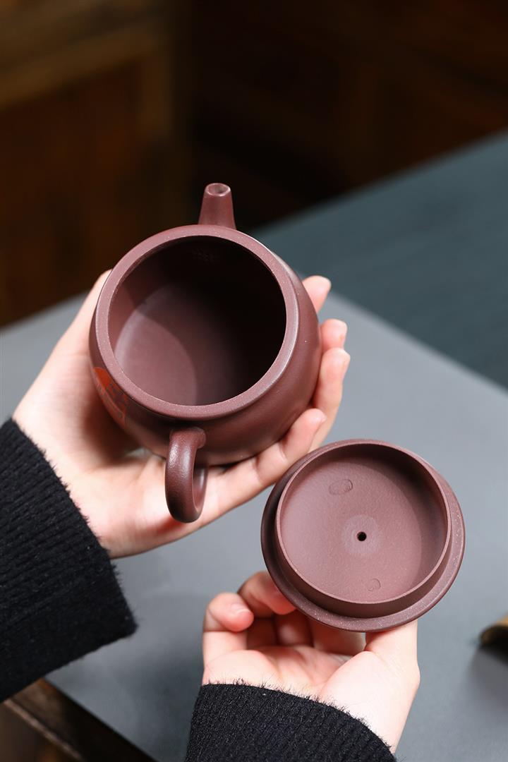 【泥料特點】砂土氣重,似淳實農民,日久使用,漸露鋒芒,養成變化,溫潤莊重。紫砂是壹種雙重氣孔結構的多孔性材質,氣孔微細,密度高。用紫砂壺沏茶,不失原味,且香不渙散,得茶之真香真味。紫砂使用越久,壺身色澤越發光亮照人,氣韻溫雅。紫砂壺長久使用器身會因撫摸擦拭,變得越發溫潤光澤。