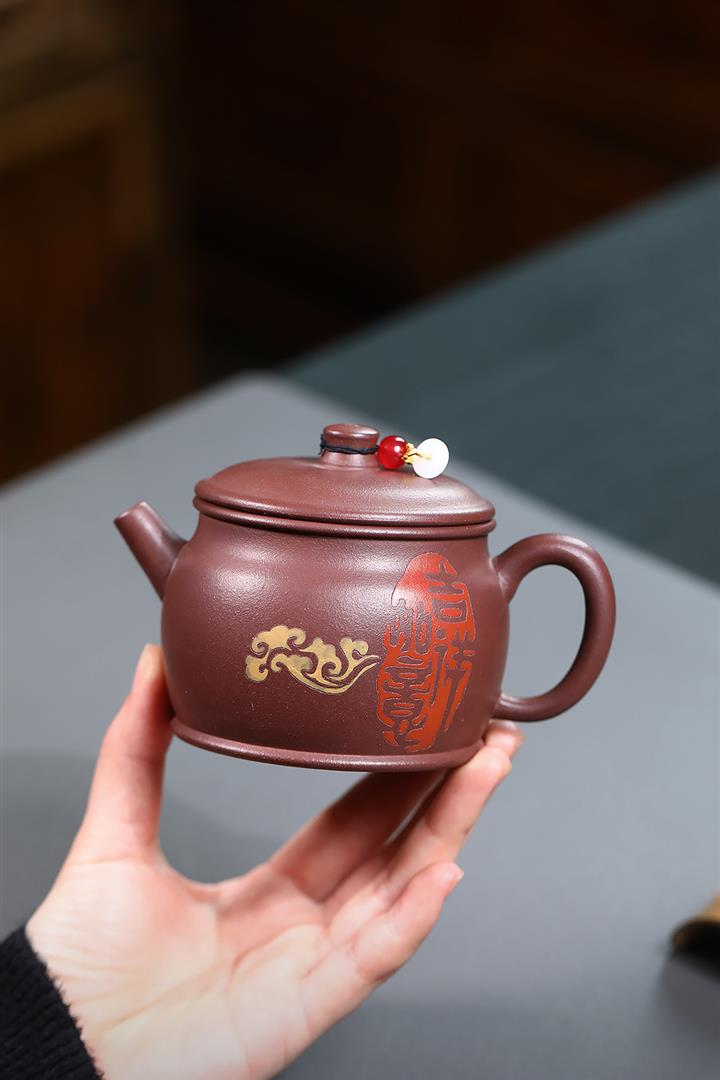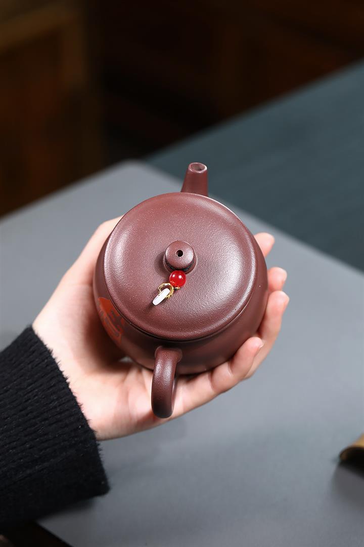 155cc原礦大紅袍紫珠泥鐘韻側把茶壺POT9753