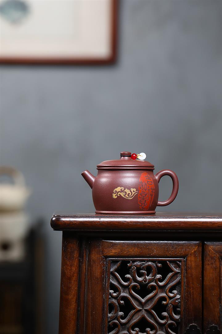 220cc原礦紫泥吉祥如意漢瓦泡茶壺POT9744