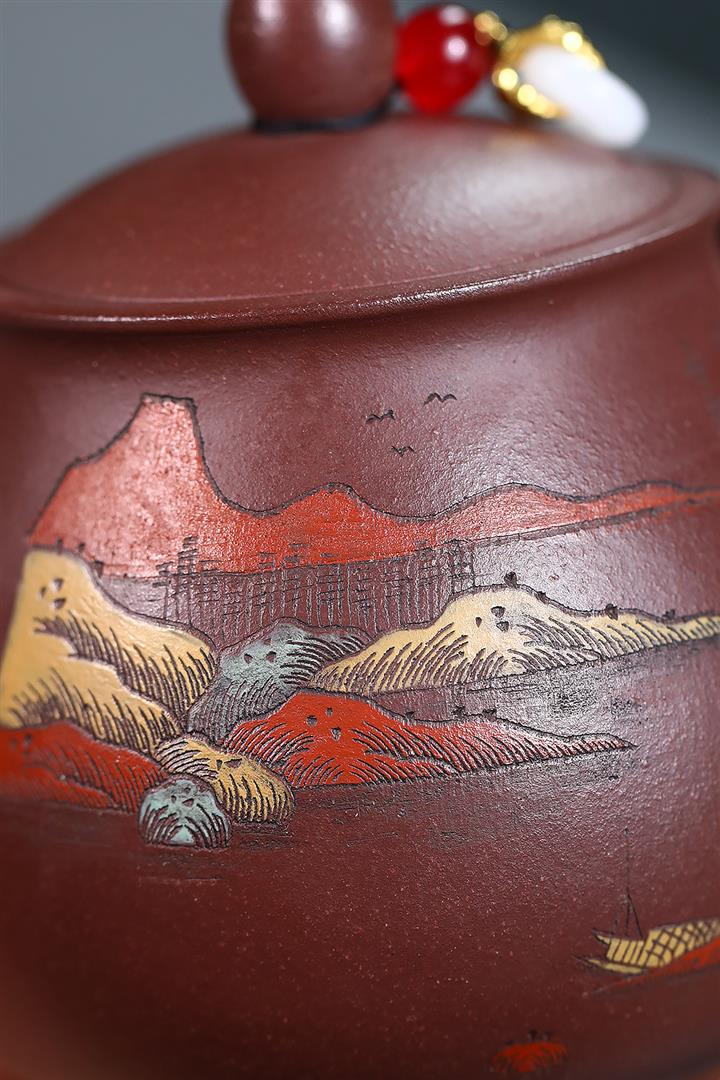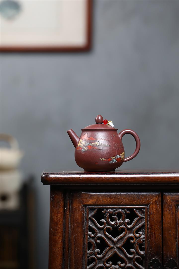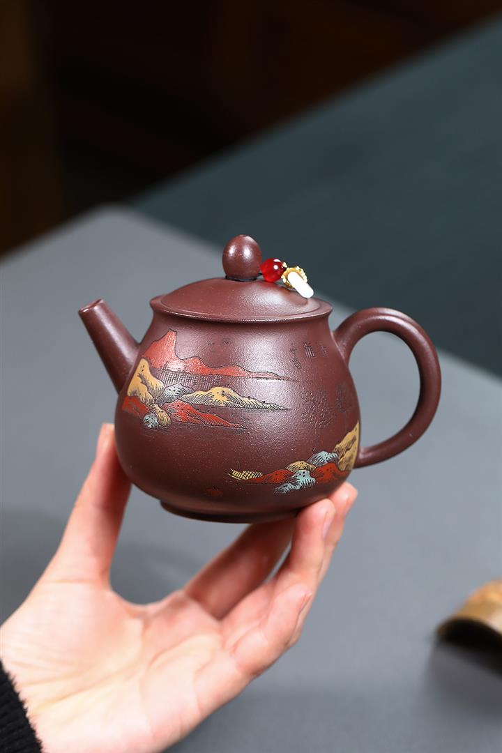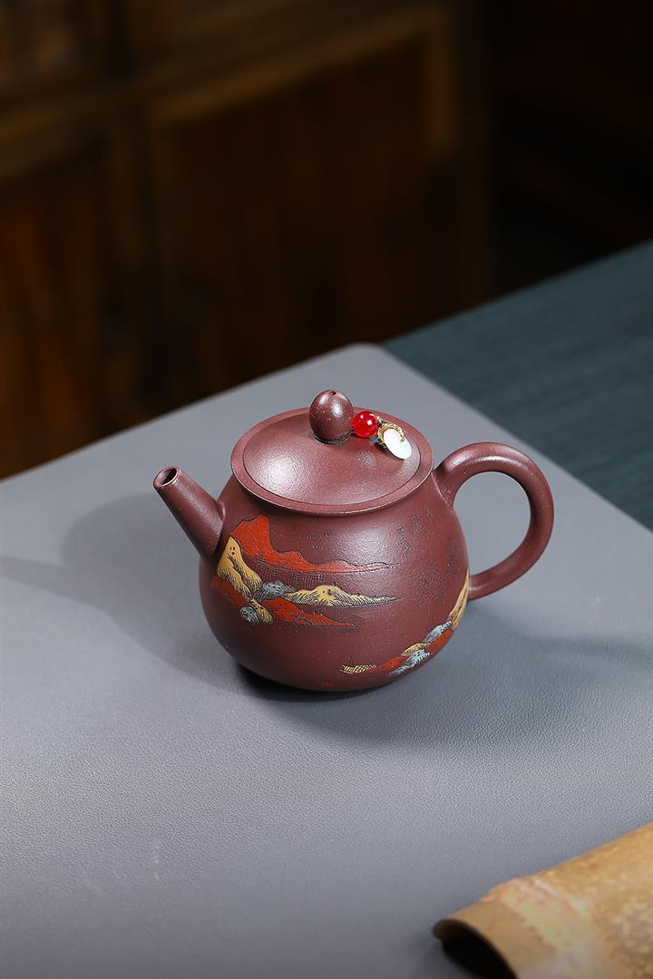 220cc原礦紫泥山水高潘壺泡茶壺POT9745
