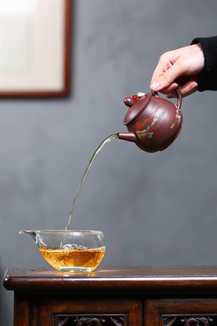 【泥料特點】砂土氣重,似淳實農民,日久使用,漸露鋒芒,養成變化,溫潤莊重。紫砂是壹種雙重氣孔結構的多孔性材質,氣孔微細,密度高。用紫砂壺沏茶,不失原味,且香不渙散,得茶之真香真味。紫砂使用越久,壺身色澤越發光亮照人,氣韻溫雅。紫砂壺長久使用器身會因撫摸擦拭,變得越發溫潤光澤。
