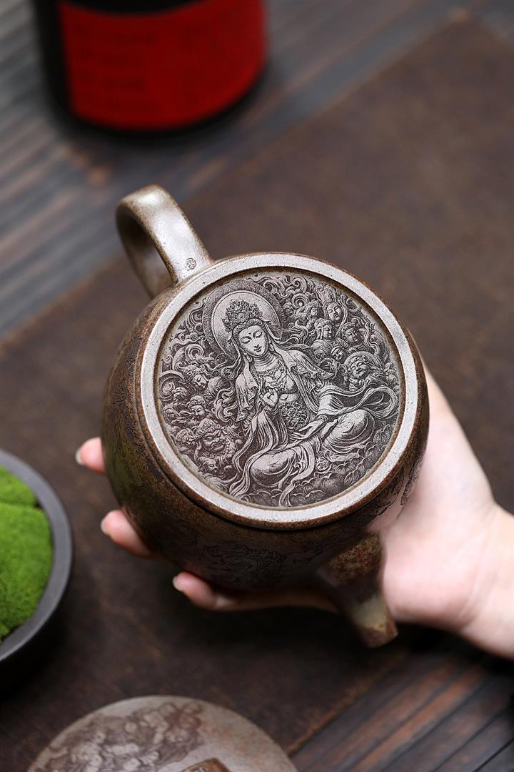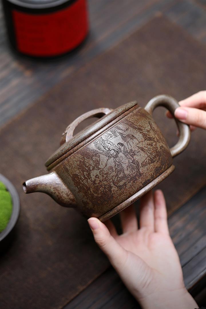330cc原礦玄鐵石黃錦繡漢瓦茶壺POT9751
