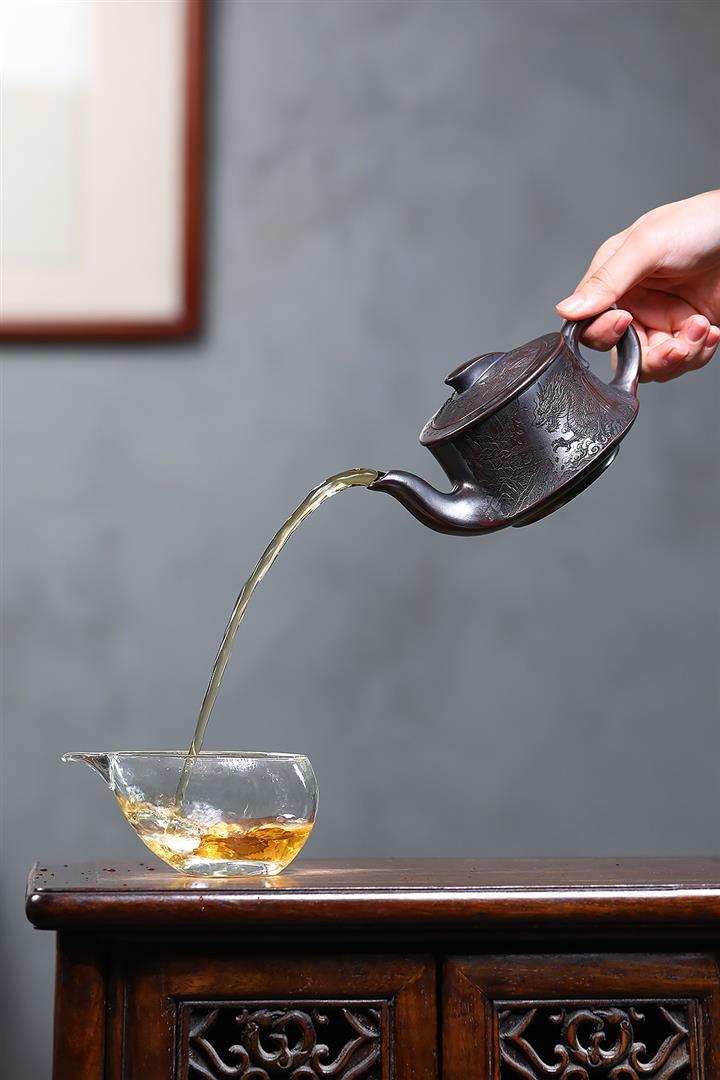 【作品介紹】此款壺形線條流暢,壺把,壺嘴,壺身壹氣呵成栩栩如生,是收藏把玩的好壺,泥料色澤古樸典雅,日久使用,漸露鋒芒,養成變化快,溫潤莊重,用其泡茶,使用的年代久,壺身就溫潤,泡出來的茶湯也就醇郁芳馨。