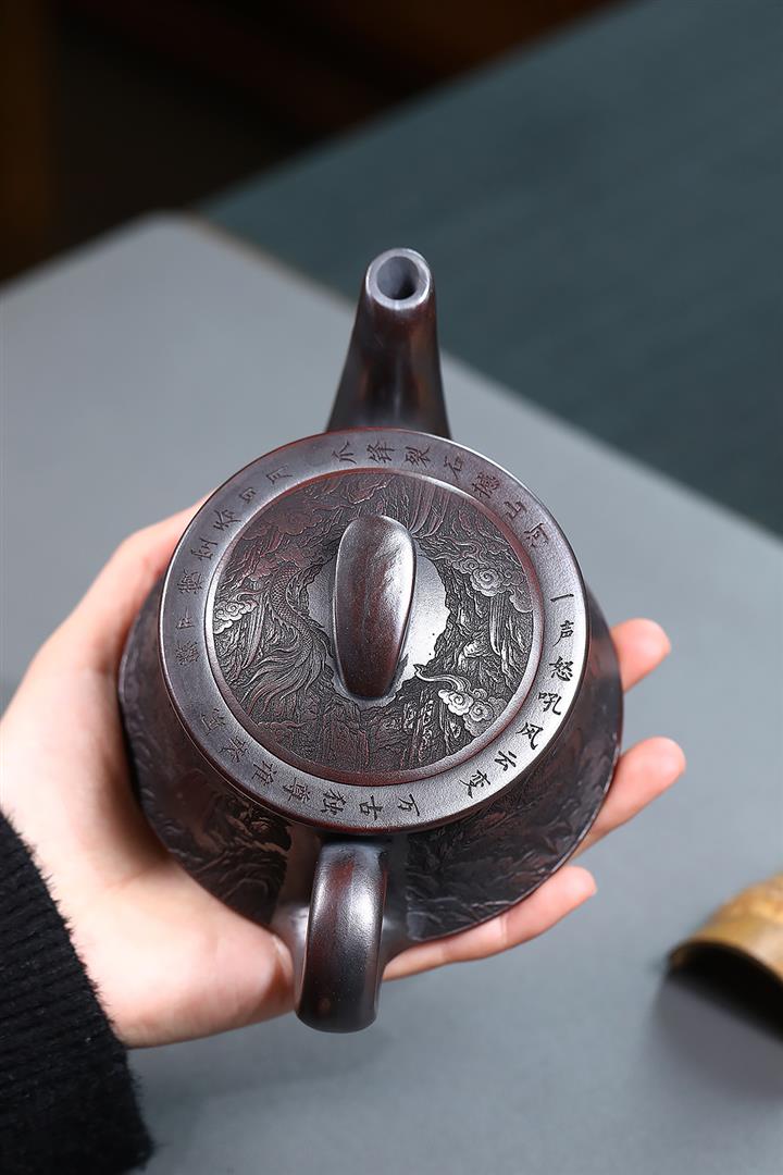 330cc原礦玄鐵石黃錦繡漢瓦茶壺POT9751