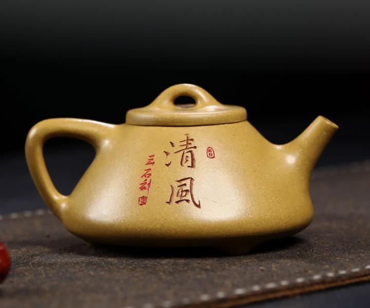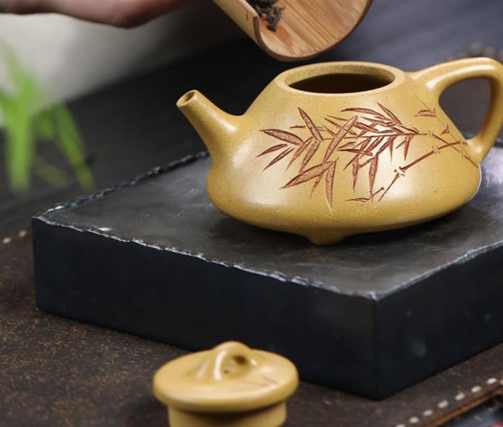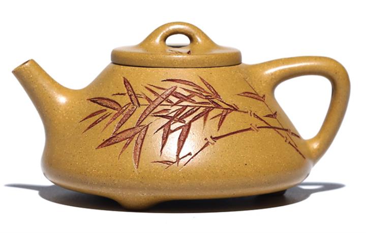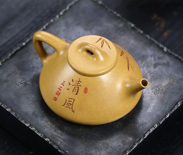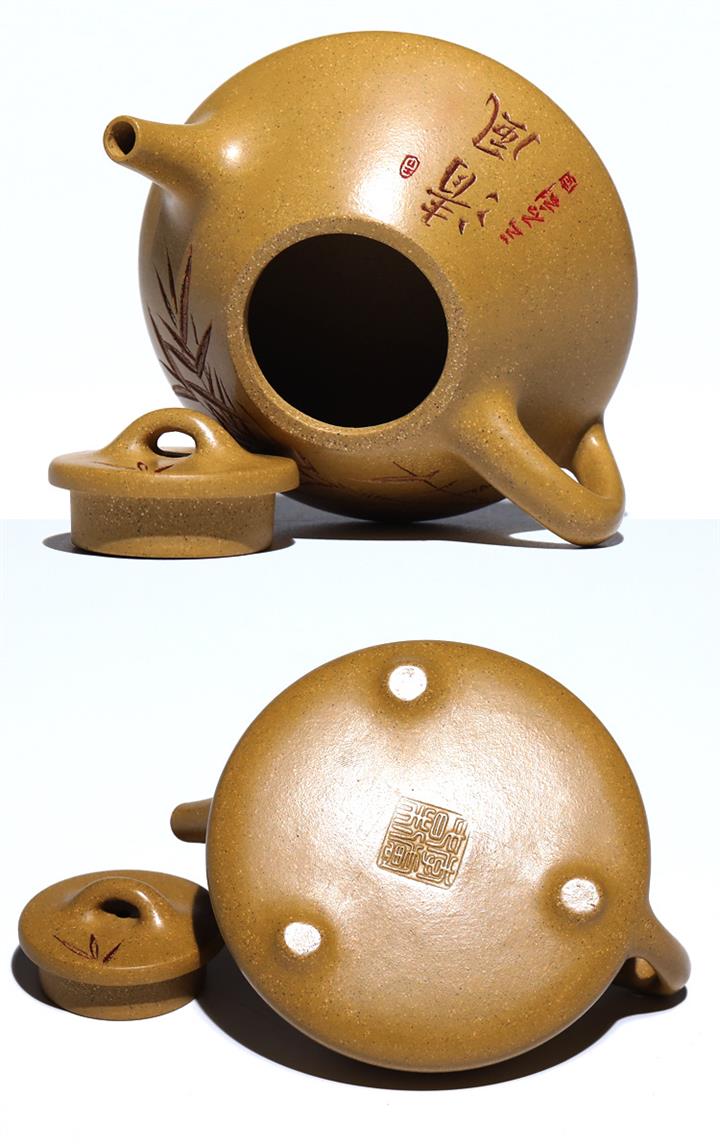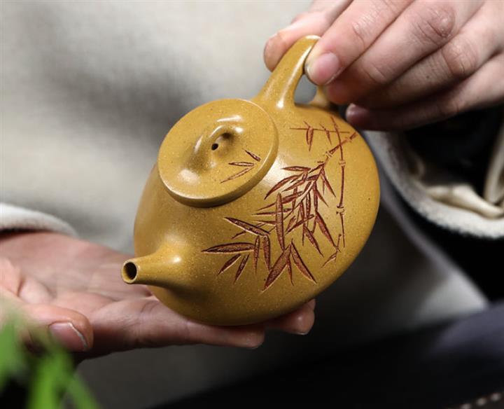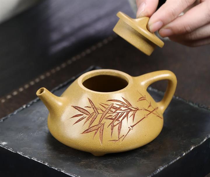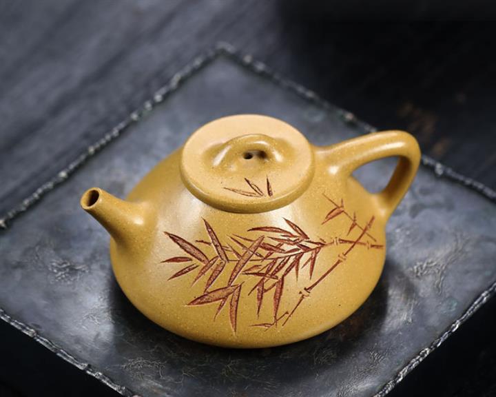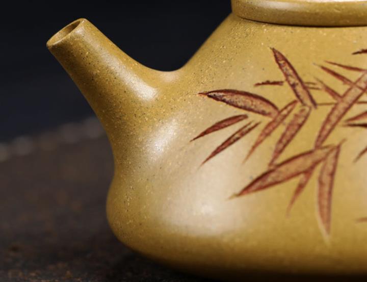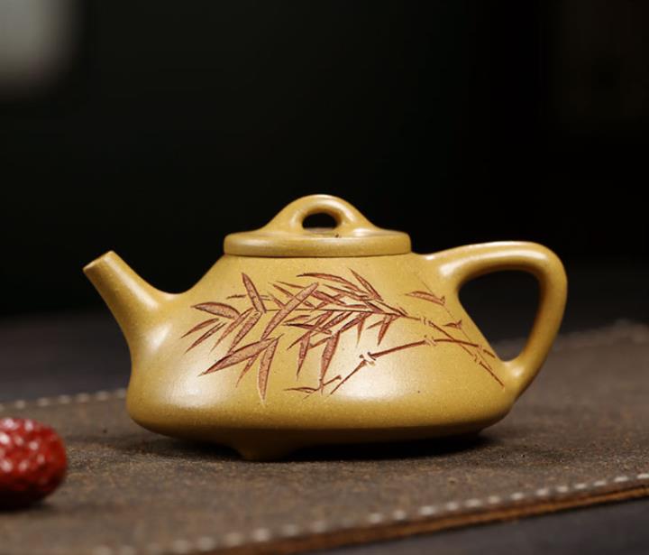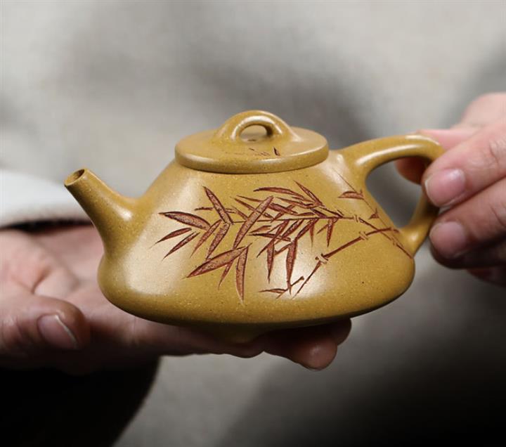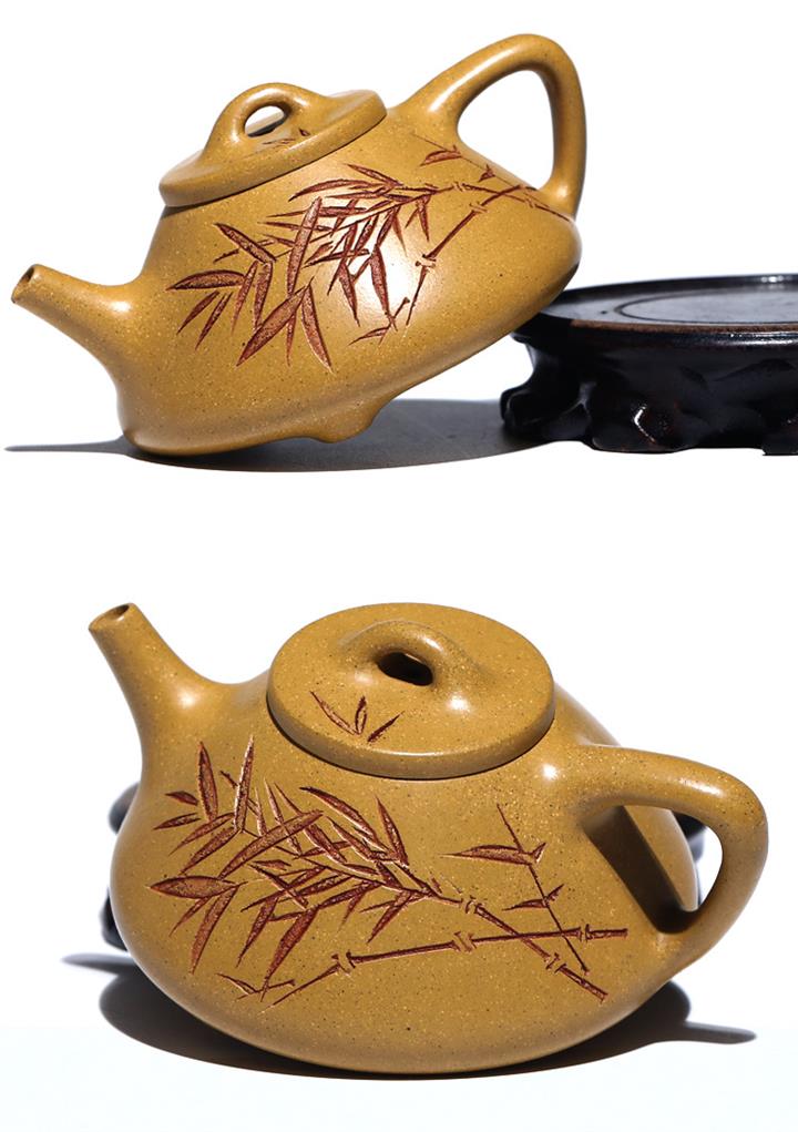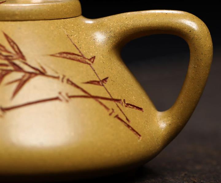 100cc原礦黃降坡泥四方雲竹薄胎小品茶壺POT9761