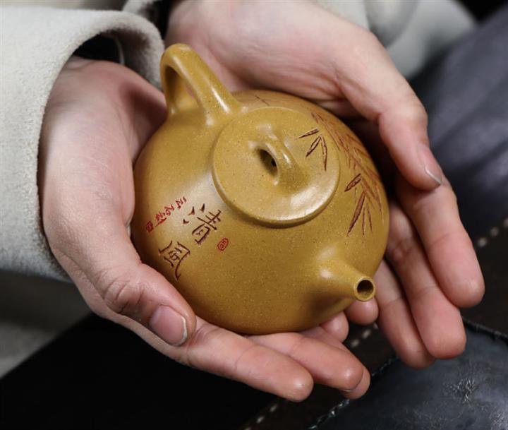 【作品介紹】此款壺形線條流暢,壺把,壺嘴,壺身壹氣呵成栩栩如生,是收藏把玩的好壺,泥料色澤古樸典雅,日久使用,漸露鋒芒,養成變化快,溫潤莊重,用其泡茶,使用的年代久,壺身就溫潤,泡出來的茶湯也就醇郁芳馨。
