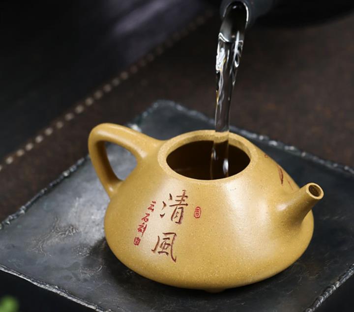 【泥料特點】砂土氣重,似淳實農民,日久使用,漸露鋒芒,養成變化,溫潤莊重。紫砂是壹種雙重氣孔結構的多孔性材質,氣孔微細,密度高。用紫砂壺沏茶,不失原味,且香不渙散,得茶之真香真味。紫砂使用越久,壺身色澤越發光亮照人,氣韻溫雅。紫砂壺長久使用器身會因撫摸擦拭,變得越發溫潤光澤。