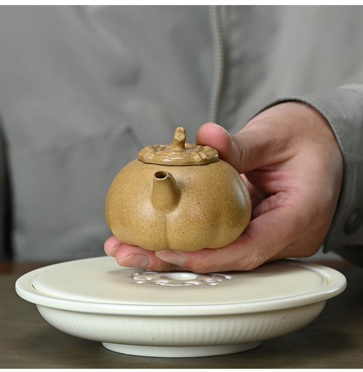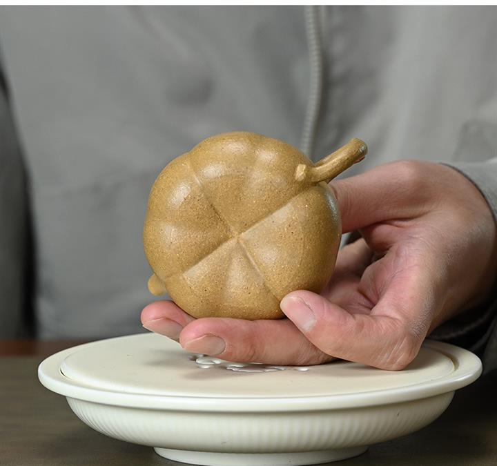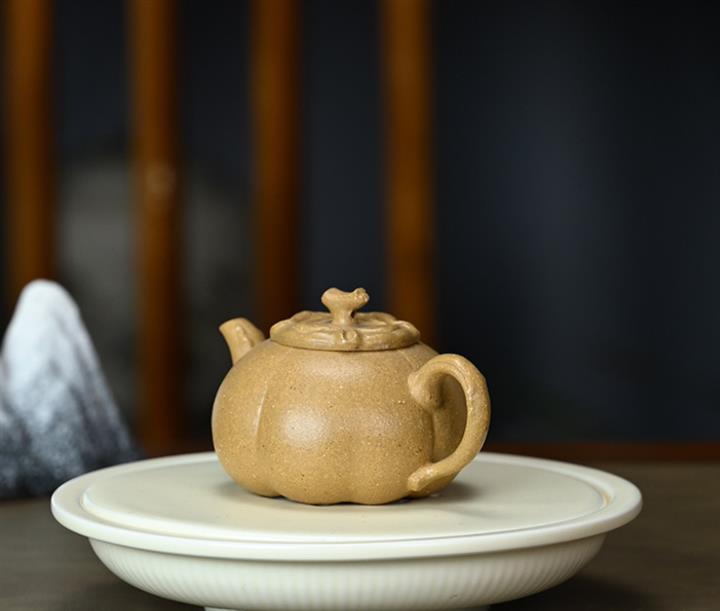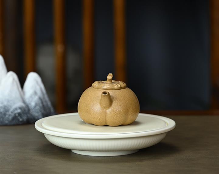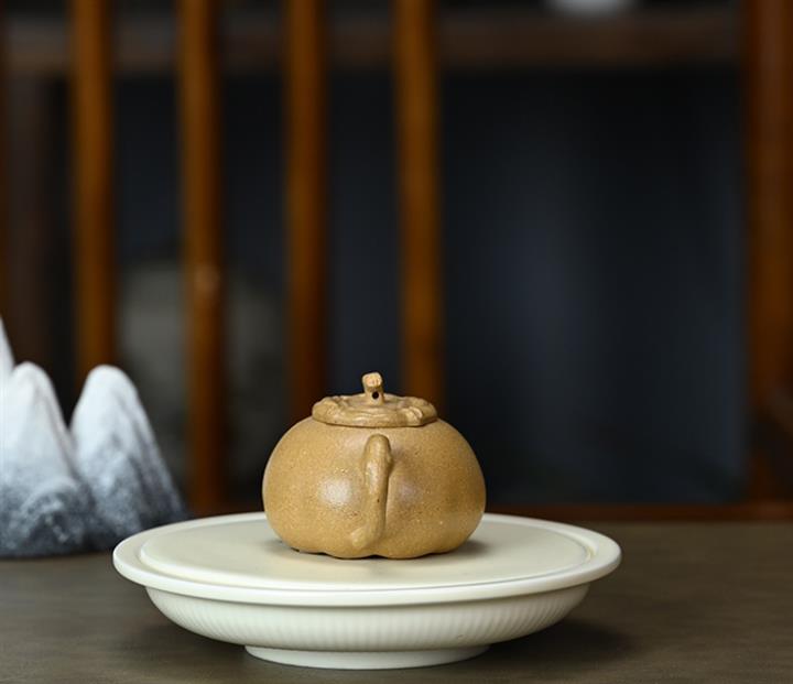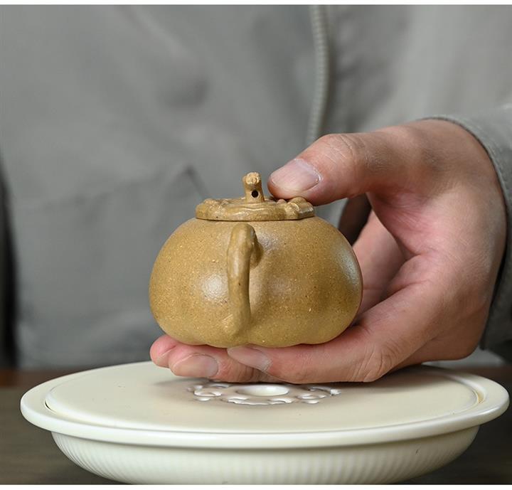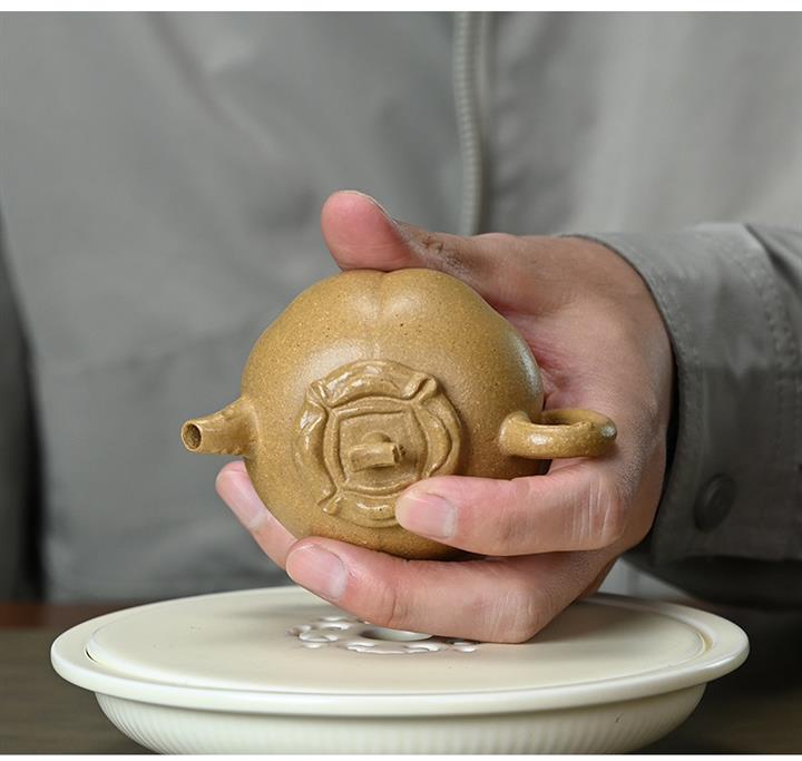 90cc原礦黃降坡泥壽桃漢瓦小品茶壺POT9762
