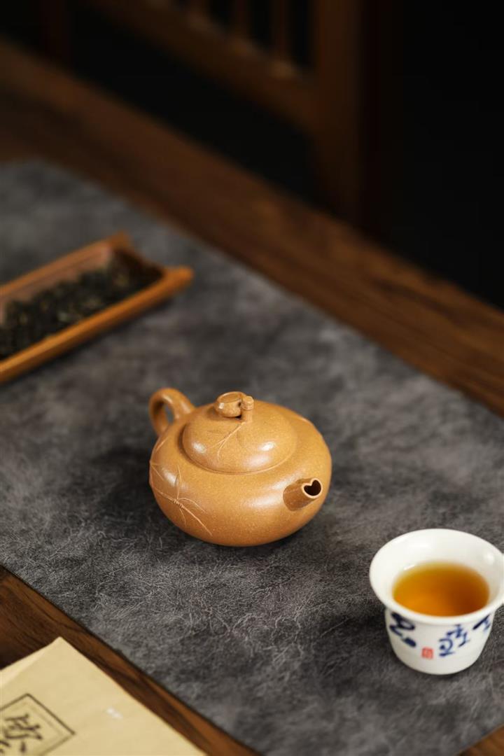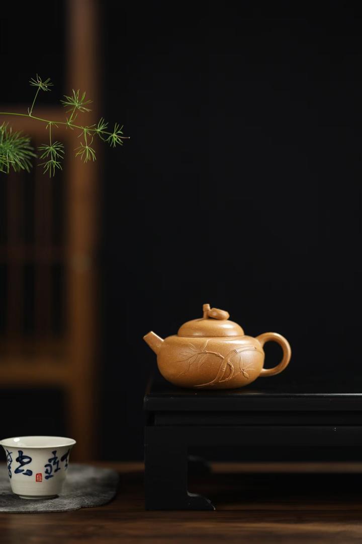 140cc原礦黃金段泥扁竹茶壺POT9766