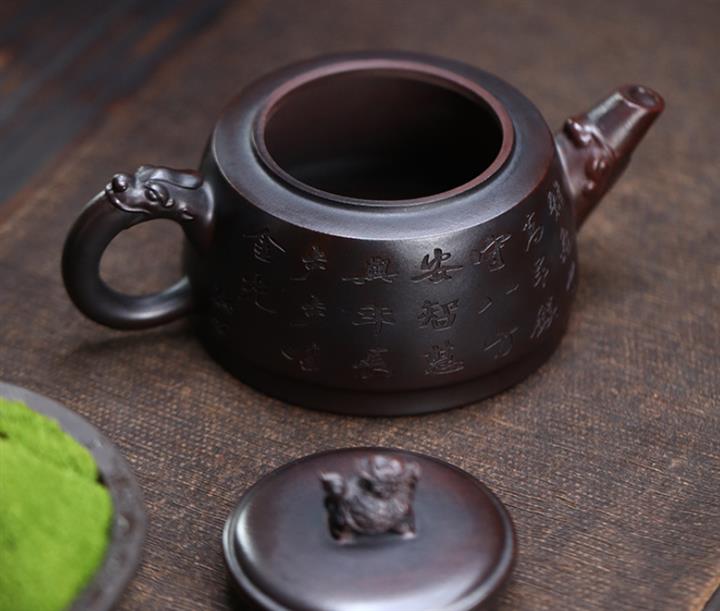 255CC原礦冒汗泥厚德載物漢瓦泡茶壺POT9773