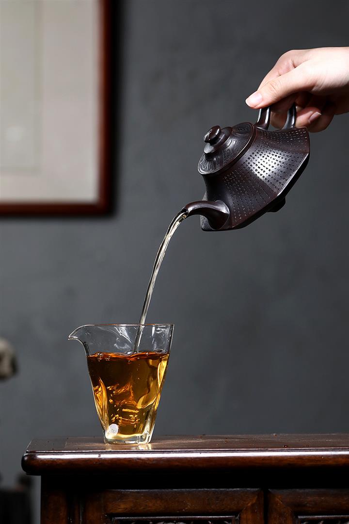 【泥料特點】砂土氣重,似淳實農民,日久使用,漸露鋒芒,養成變化,溫潤莊重。紫砂是壹種雙重氣孔結構的多孔性材質,氣孔微細,密度高。用紫砂壺沏茶,不失原味,且香不渙散,得茶之真香真味。紫砂使用越久,壺身色澤越發光亮照人,氣韻溫雅。紫砂壺長久使用器身會因撫摸擦拭,變得越發溫潤光澤。