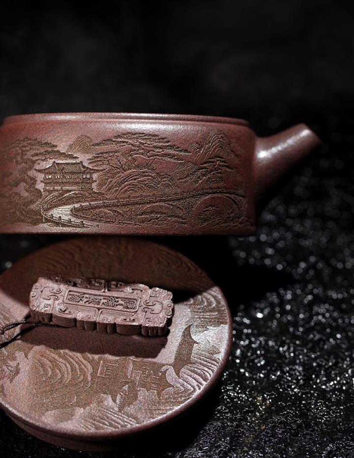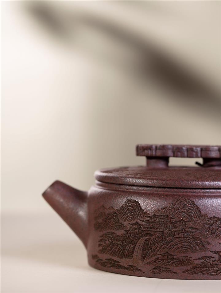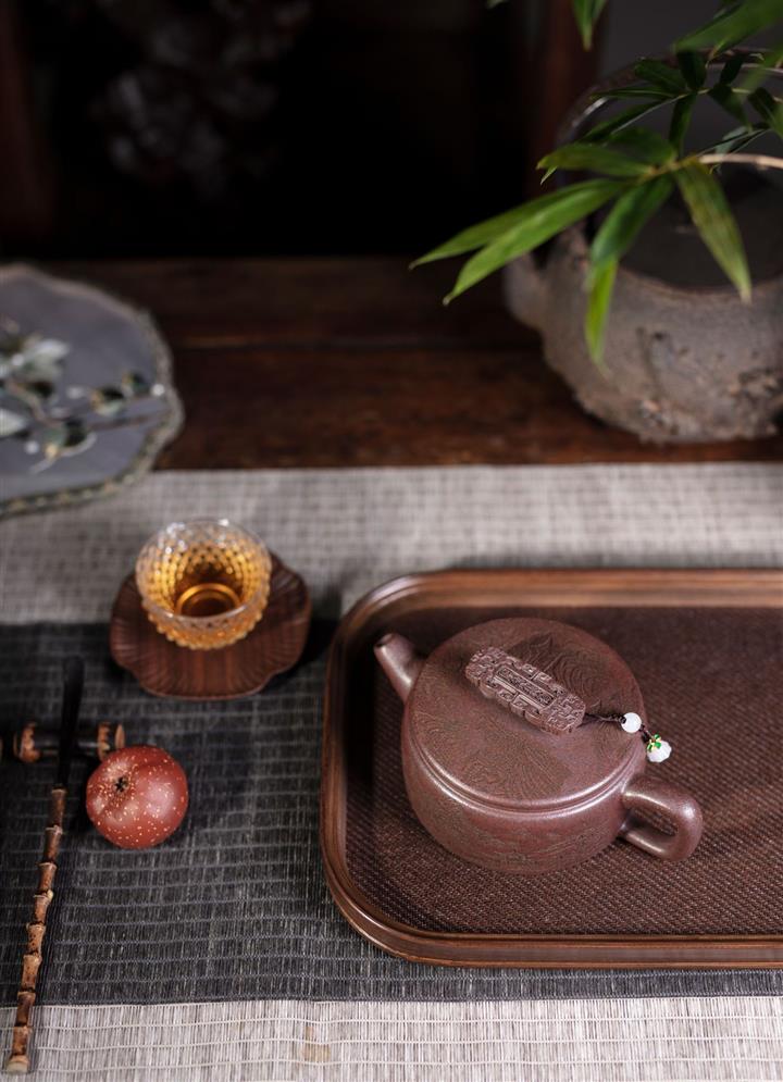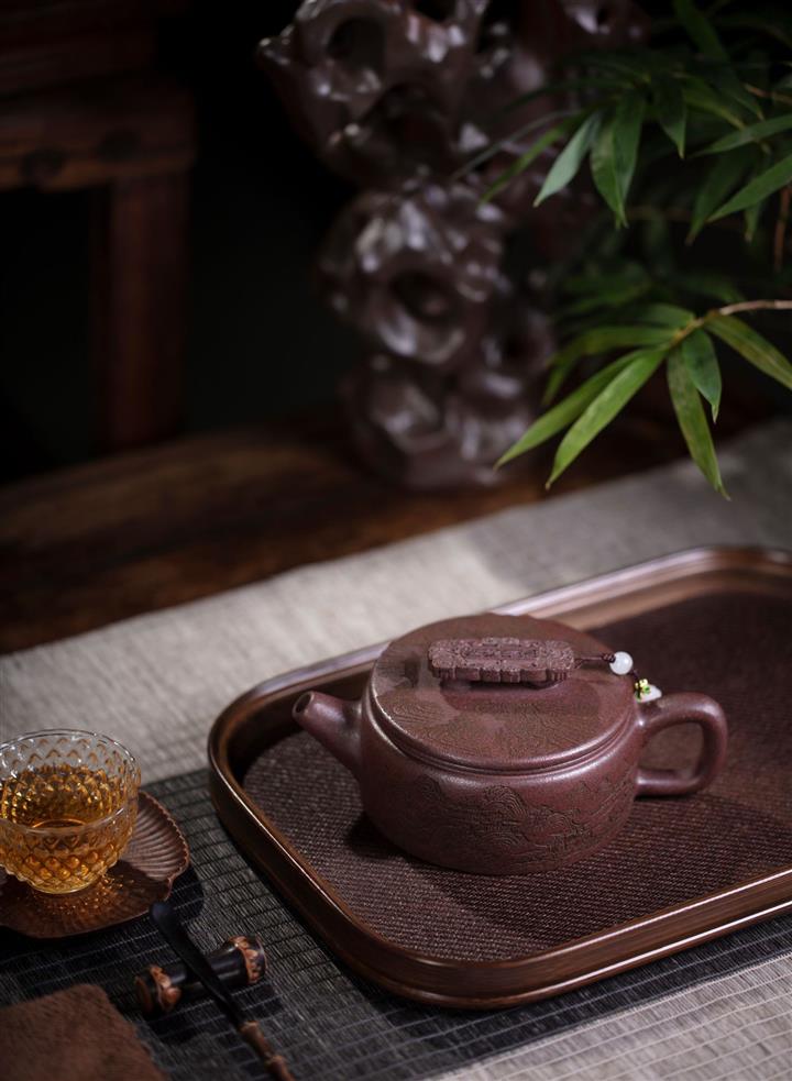 【泥料特點】砂土氣重,似淳實農民,日久使用,漸露鋒芒,養成變化,溫潤莊重。紫砂是壹種雙重氣孔結構的多孔性材質,氣孔微細,密度高。用紫砂壺沏茶,不失原味,且香不渙散,得茶之真香真味。紫砂使用越久,壺身色澤越發光亮照人,氣韻溫雅。紫砂壺長久使用器身會因撫摸擦拭,變得越發溫潤光澤。