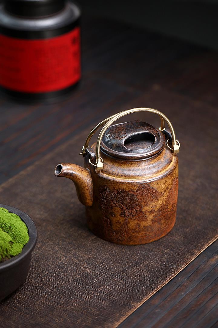 470cc原礦高溫段泥柴燒牛蓋洋桶提梁泡茶壺POT9779