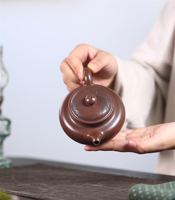 【泥料特點】砂土氣重,似淳實農民,日久使用,漸露鋒芒,養成變化,溫潤莊重。紫砂是壹種雙重氣孔結構的多孔性材質,氣孔微細,密度高。用紫砂壺沏茶,不失原味,且香不渙散,得茶之真香真味。紫砂使用越久,壺身色澤越發光亮照人,氣韻溫雅。紫砂壺長久使用器身會因撫摸擦拭,變得越發溫潤光澤。