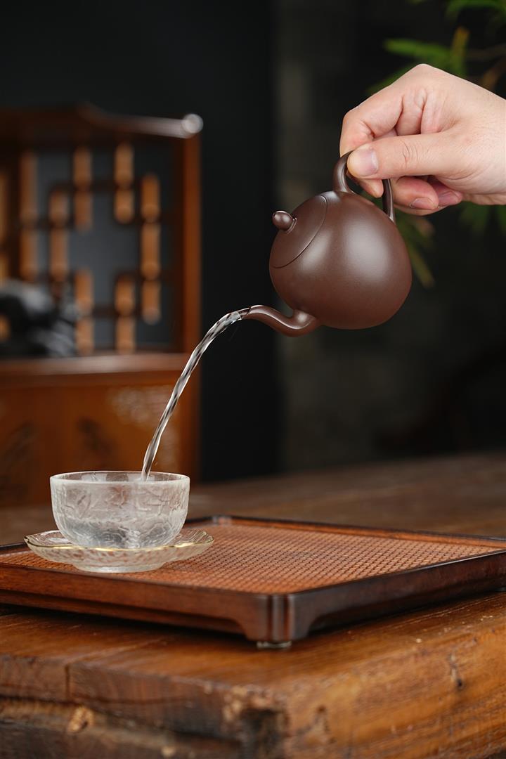 【泥料特點】砂土氣重,似淳實農民,日久使用,漸露鋒芒,養成變化,溫潤莊重。紫砂是壹種雙重氣孔結構的多孔性材質,氣孔微細,密度高。用紫砂壺沏茶,不失原味,且香不渙散,得茶之真香真味。紫砂使用越久,壺身色澤越發光亮照人,氣韻溫雅。紫砂壺長久使用器身會因撫摸擦拭,變得越發溫潤光澤。