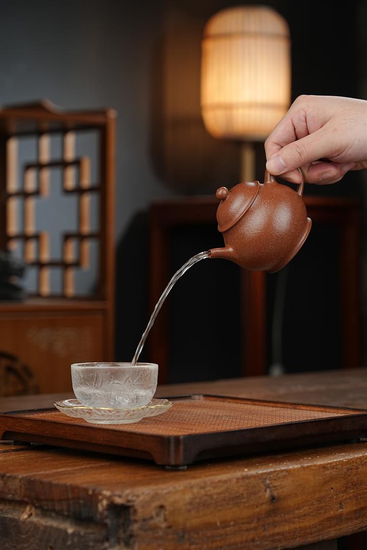【泥料特點】砂土氣重,似淳實農民,日久使用,漸露鋒芒,養成變化,溫潤莊重。紫砂是壹種雙重氣孔結構的多孔性材質,氣孔微細,密度高。用紫砂壺沏茶,不失原味,且香不渙散,得茶之真香真味。紫砂使用越久,壺身色澤越發光亮照人,氣韻溫雅。紫砂壺長久使用器身會因撫摸擦拭,變得越發溫潤光澤。