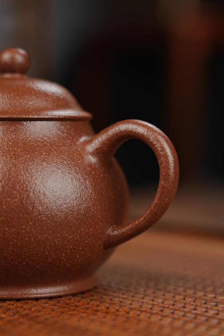 【作品介紹】此款壺形線條流暢,壺把,壺嘴,壺身壹氣呵成栩栩如生,是收藏把玩的好壺,泥料色澤古樸典雅,日久使用,漸露鋒芒,養成變化快,溫潤莊重,用其泡茶,使用的年代久,壺身就溫潤,泡出來的茶湯也就醇郁芳馨。