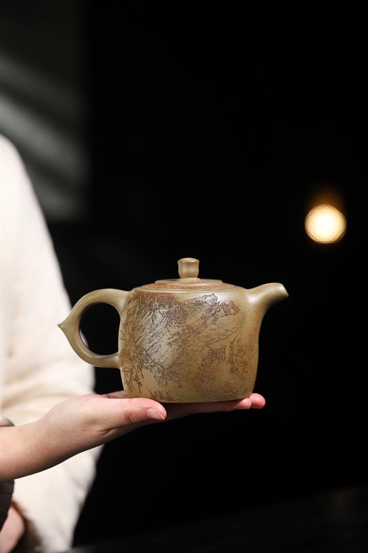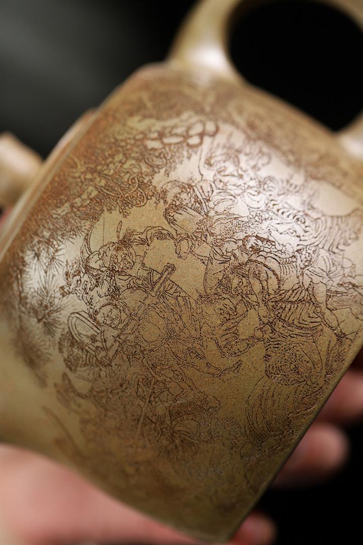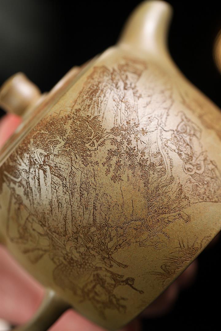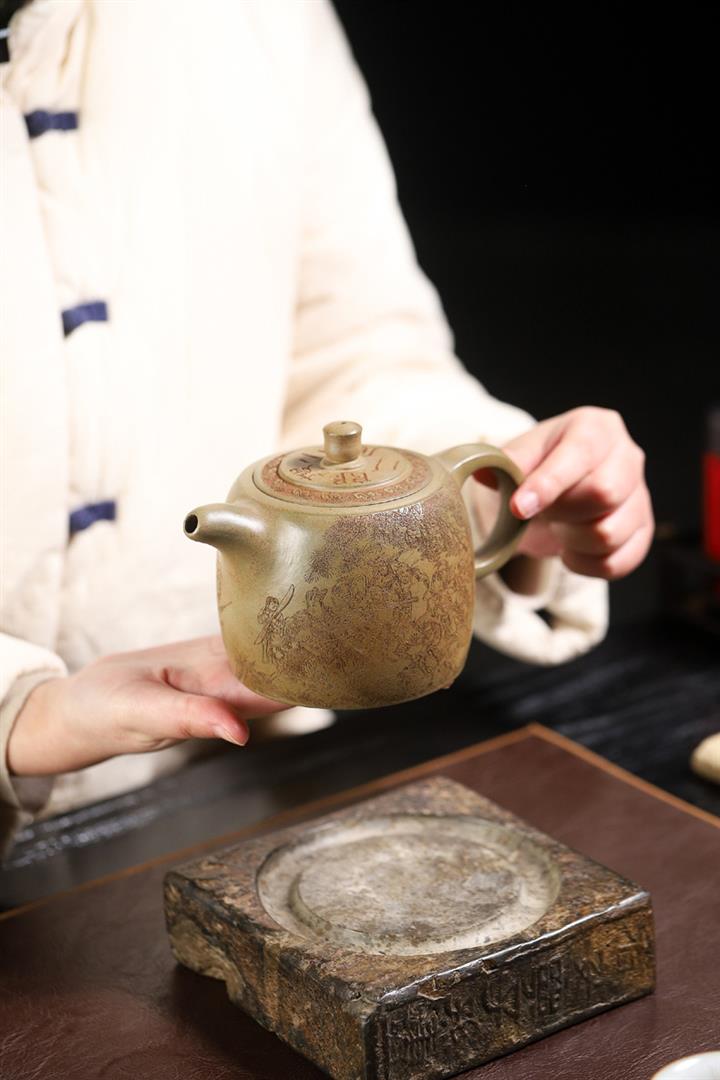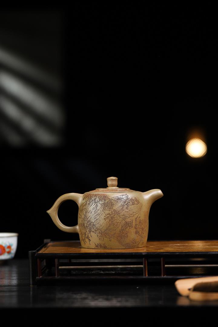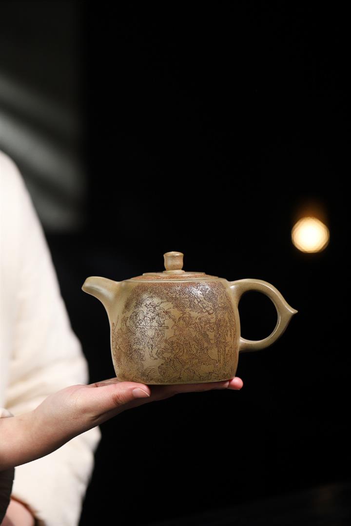 170cc原礦紫泥刻繪寒江泡茶壺POT9815