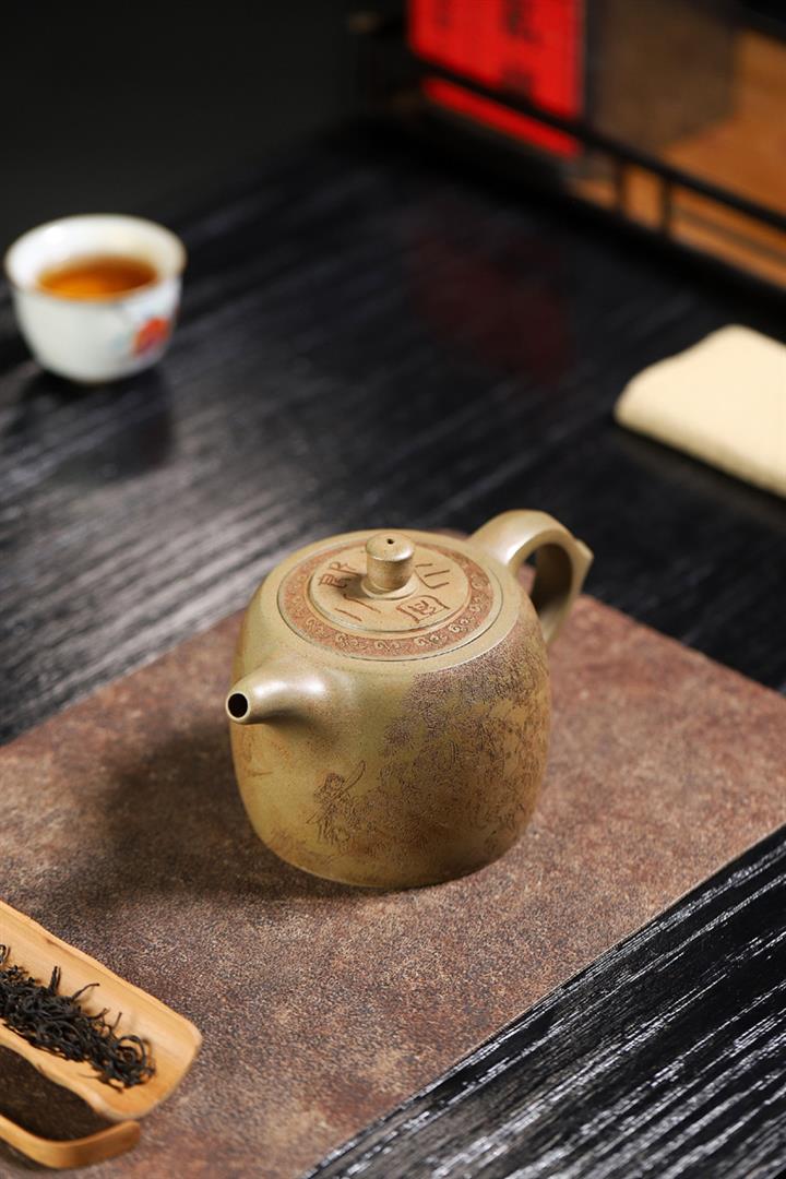 150cc原礦綠泥寒江八方來財泡茶壺POT9810