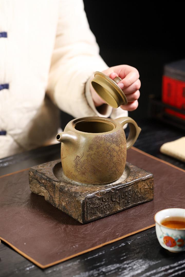 【泥料特點】砂土氣重,似淳實農民,日久使用,漸露鋒芒,養成變化,溫潤莊重。紫砂是壹種雙重氣孔結構的多孔性材質,氣孔微細,密度高。用紫砂壺沏茶,不失原味,且香不渙散,得茶之真香真味。紫砂使用越久,壺身色澤越發光亮照人,氣韻溫雅。紫砂壺長久使用器身會因撫摸擦拭,變得越發溫潤光澤。