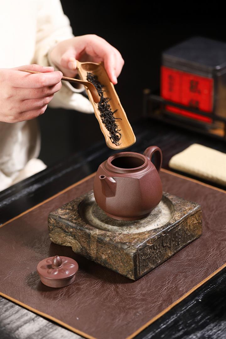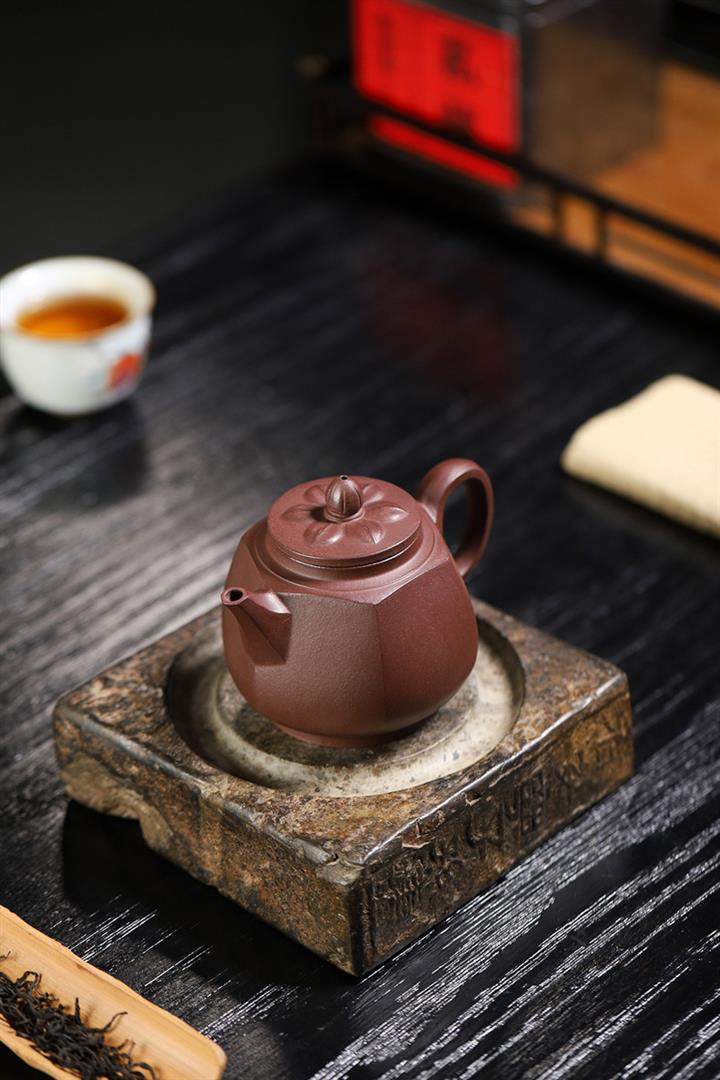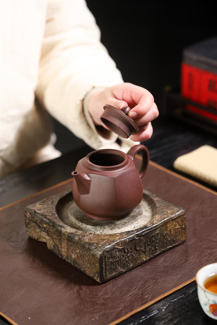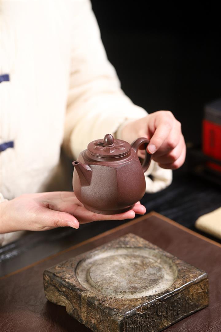 【泥料特點】砂土氣重,似淳實農民,日久使用,漸露鋒芒,養成變化,溫潤莊重。紫砂是壹種雙重氣孔結構的多孔性材質,氣孔微細,密度高。用紫砂壺沏茶,不失原味,且香不渙散,得茶之真香真味。紫砂使用越久,壺身色澤越發光亮照人,氣韻溫雅。紫砂壺長久使用器身會因撫摸擦拭,變得越發溫潤光澤。