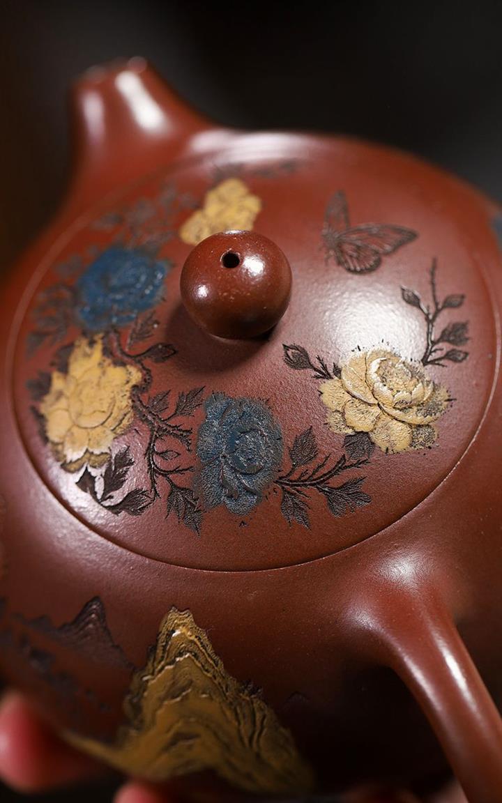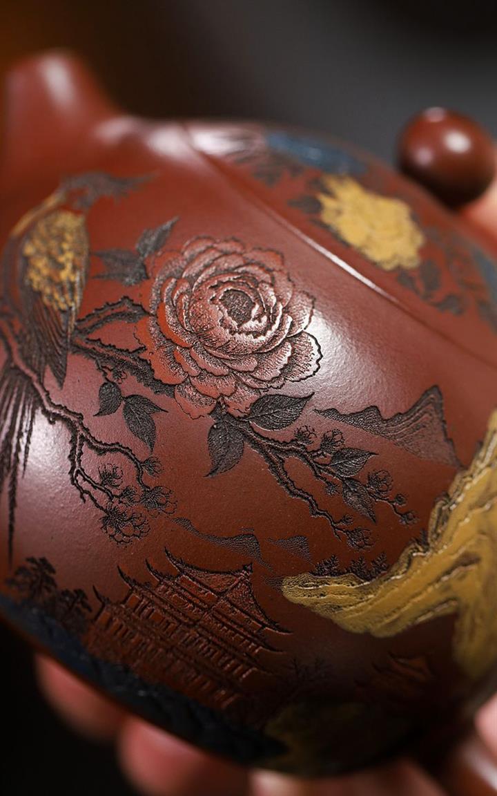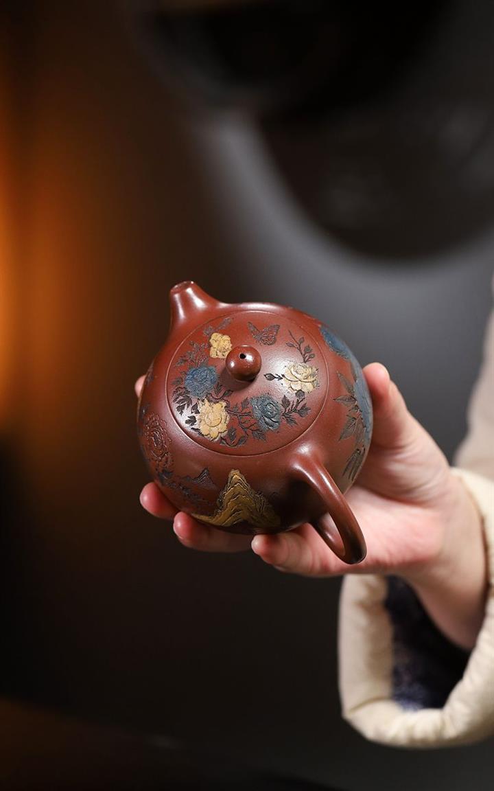 【泥料特點】砂土氣重,似淳實農民,日久使用,漸露鋒芒,養成變化,溫潤莊重。紫砂是壹種雙重氣孔結構的多孔性材質,氣孔微細,密度高。用紫砂壺沏茶,不失原味,且香不渙散,得茶之真香真味。紫砂使用越久,壺身色澤越發光亮照人,氣韻溫雅。紫砂壺長久使用器身會因撫摸擦拭,變得越發溫潤光澤。