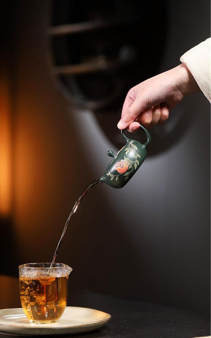 【泥料特點】砂土氣重,似淳實農民,日久使用,漸露鋒芒,養成變化,溫潤莊重。紫砂是壹種雙重氣孔結構的多孔性材質,氣孔微細,密度高。用紫砂壺沏茶,不失原味,且香不渙散,得茶之真香真味。紫砂使用越久,壺身色澤越發光亮照人,氣韻溫雅。紫砂壺長久使用器身會因撫摸擦拭,變得越發溫潤光澤。