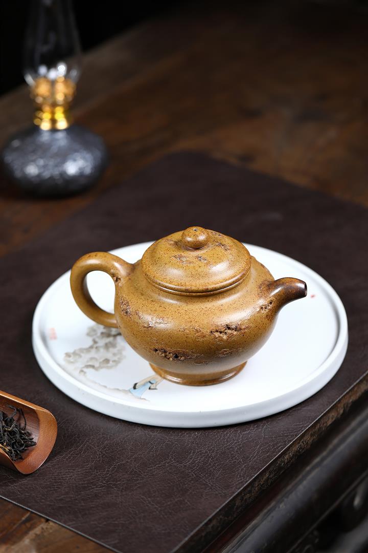 【泥料特點】砂土氣重,似淳實農民,日久使用,漸露鋒芒,養成變化,溫潤莊重。紫砂是壹種雙重氣孔結構的多孔性材質,氣孔微細,密度高。用紫砂壺沏茶,不失原味,且香不渙散,得茶之真香真味。紫砂使用越久,壺身色澤越發光亮照人,氣韻溫雅。紫砂壺長久使用器身會因撫摸擦拭,變得越發溫潤光澤。