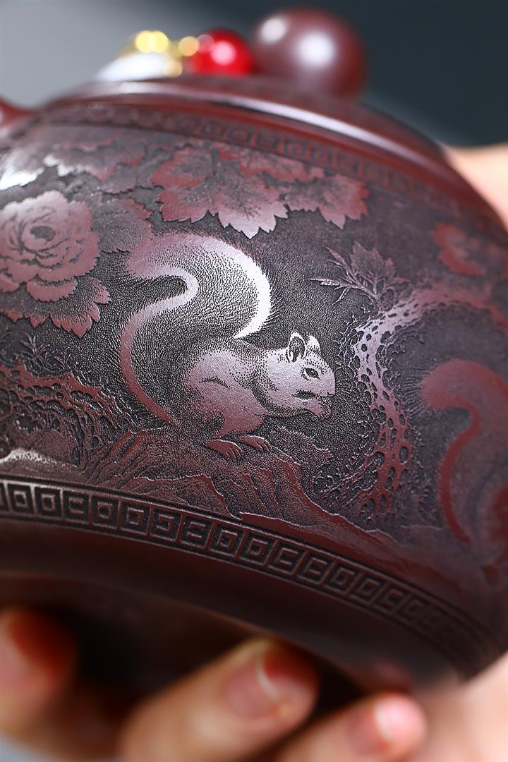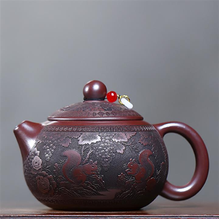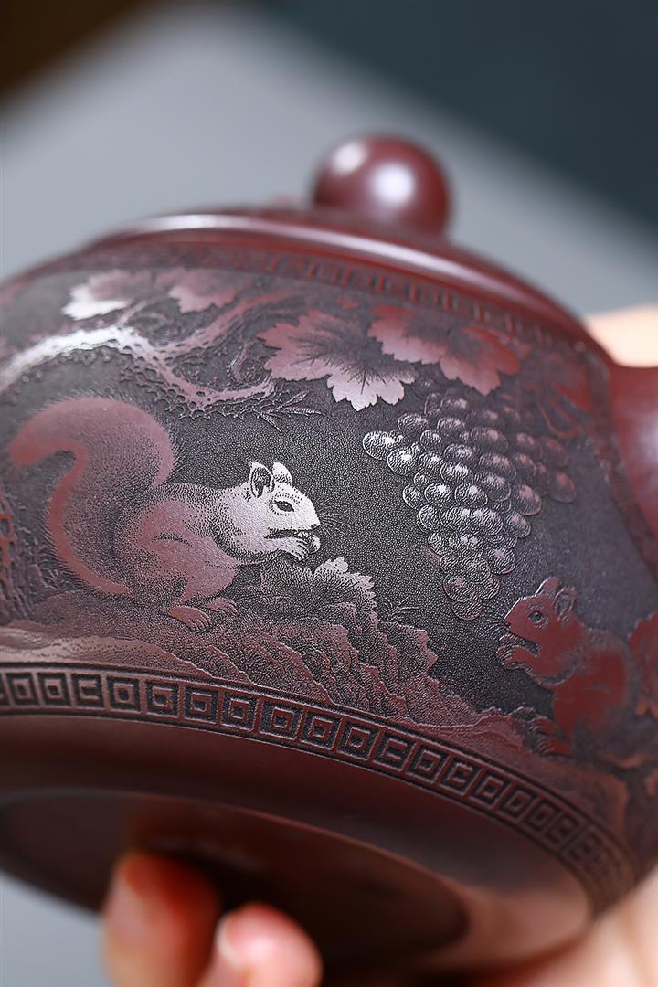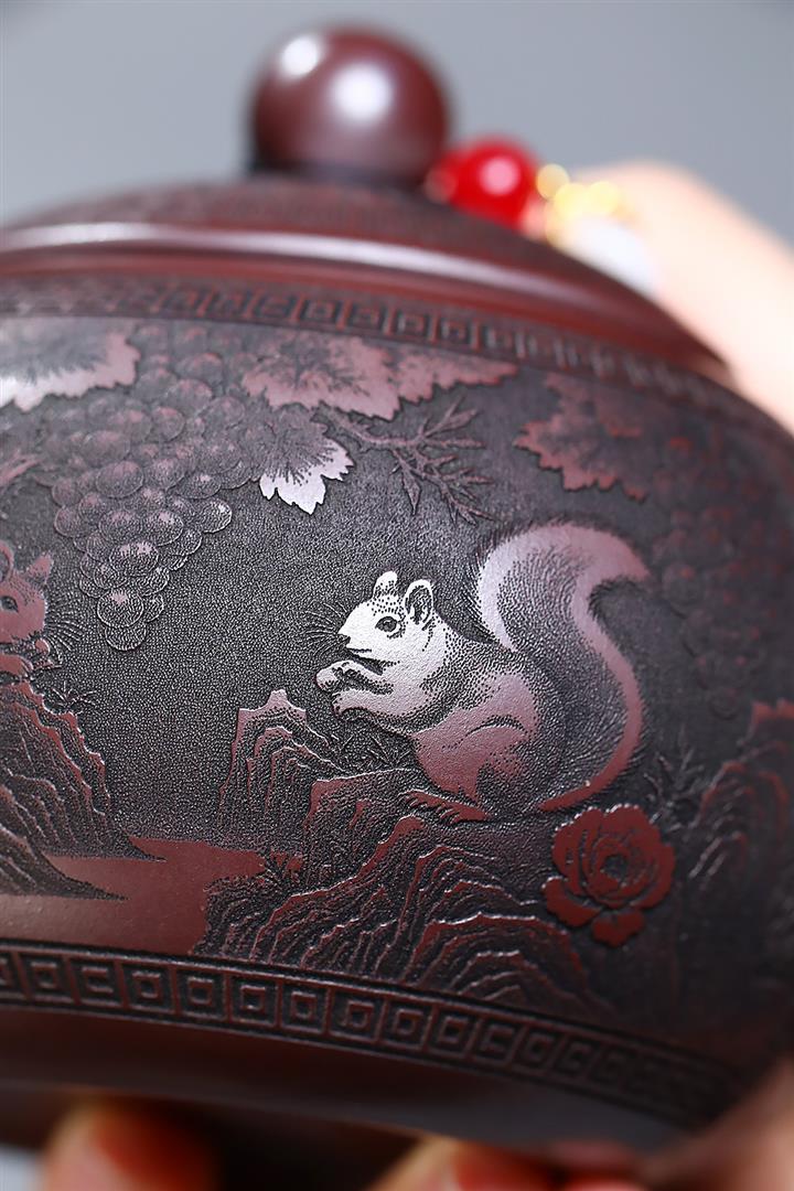 380cc原礦玄鐵石紅松鼠葡萄西施泡茶壺POT9836