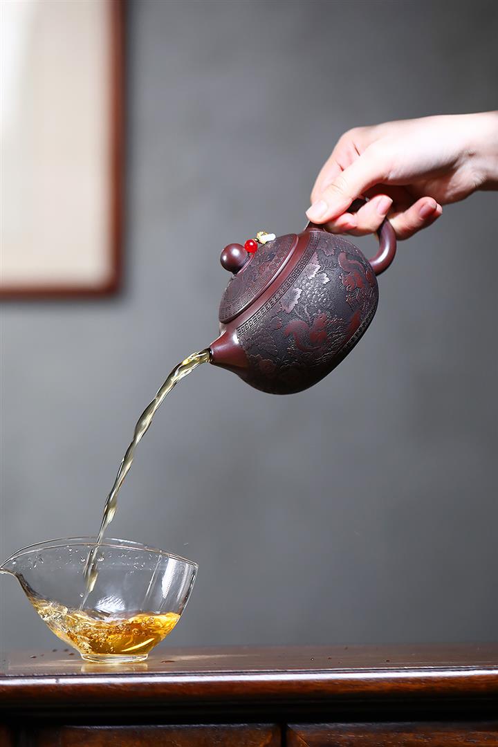 【泥料特點】砂土氣重,似淳實農民,日久使用,漸露鋒芒,養成變化,溫潤莊重。紫砂是壹種雙重氣孔結構的多孔性材質,氣孔微細,密度高。用紫砂壺沏茶,不失原味,且香不渙散,得茶之真香真味。紫砂使用越久,壺身色澤越發光亮照人,氣韻溫雅。紫砂壺長久使用器身會因撫摸擦拭,變得越發溫潤光澤。