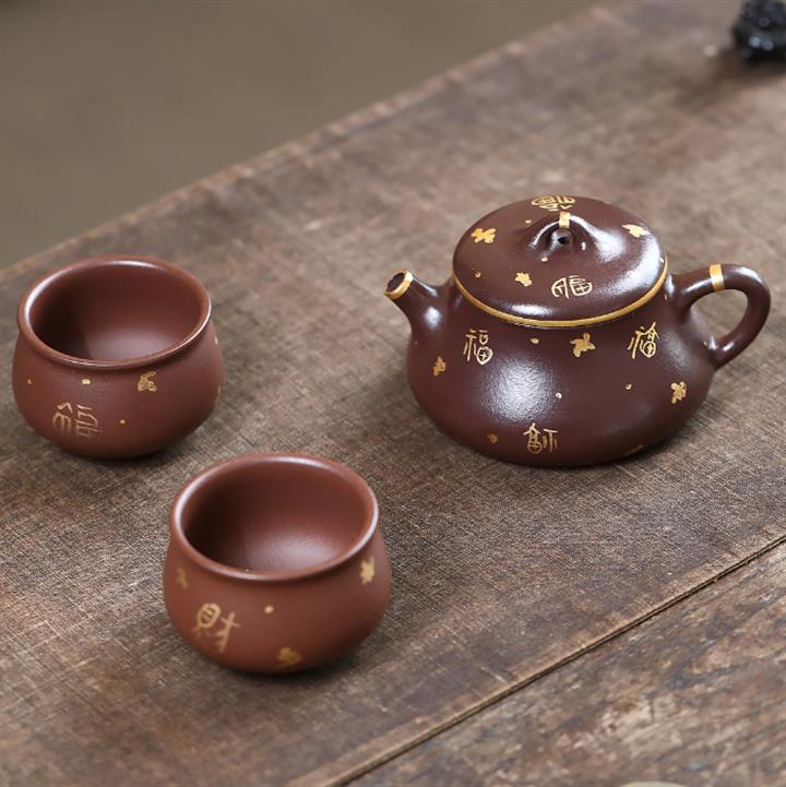 150cc原礦紫泥描金小蘊瓢壹壺兩杯套組泡茶壺POT9844
