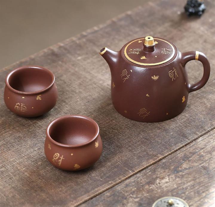260cc原礦紫泥壹壺兩杯描金漢鐸套組泡茶壺POT9845