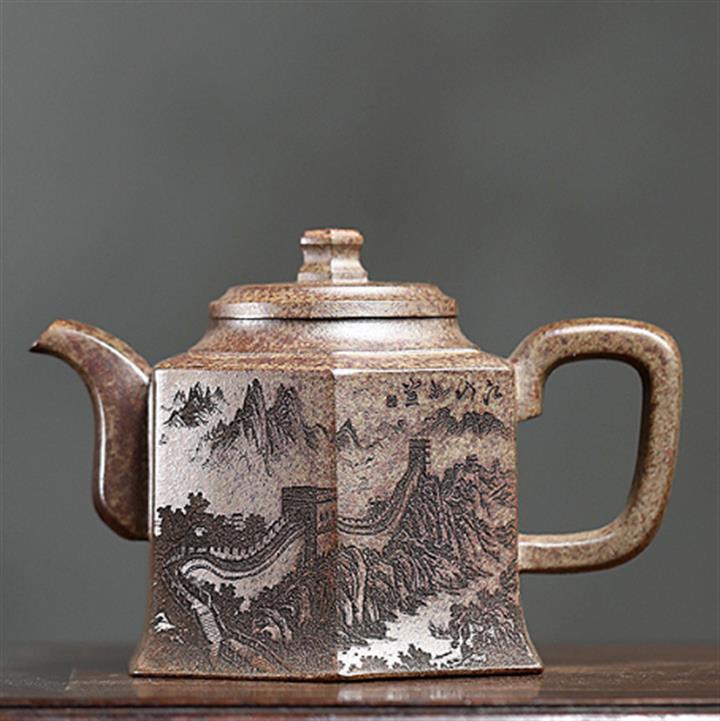 280cc原礦雲霧沈香泥六方金鐘泡茶壺POT9842