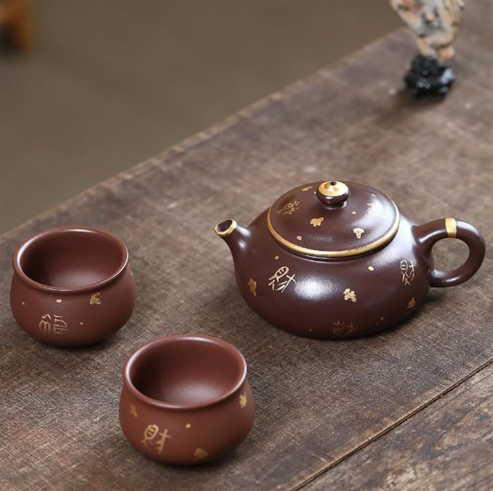 180cc原礦紫泥描金寒江壹壺兩杯泡茶壺POT9846