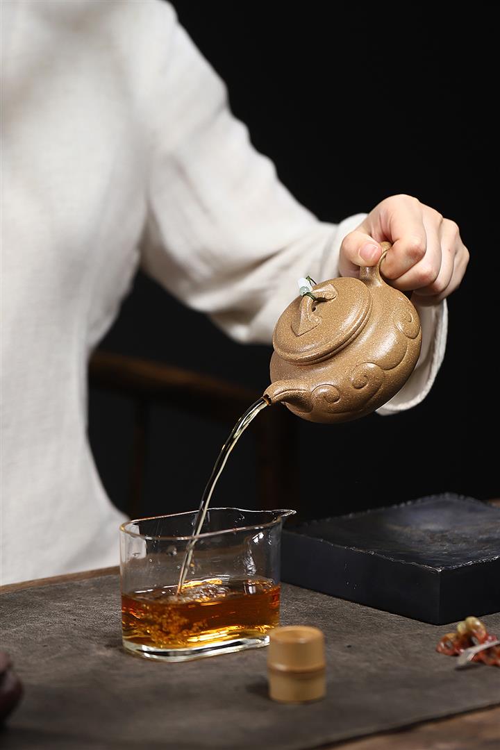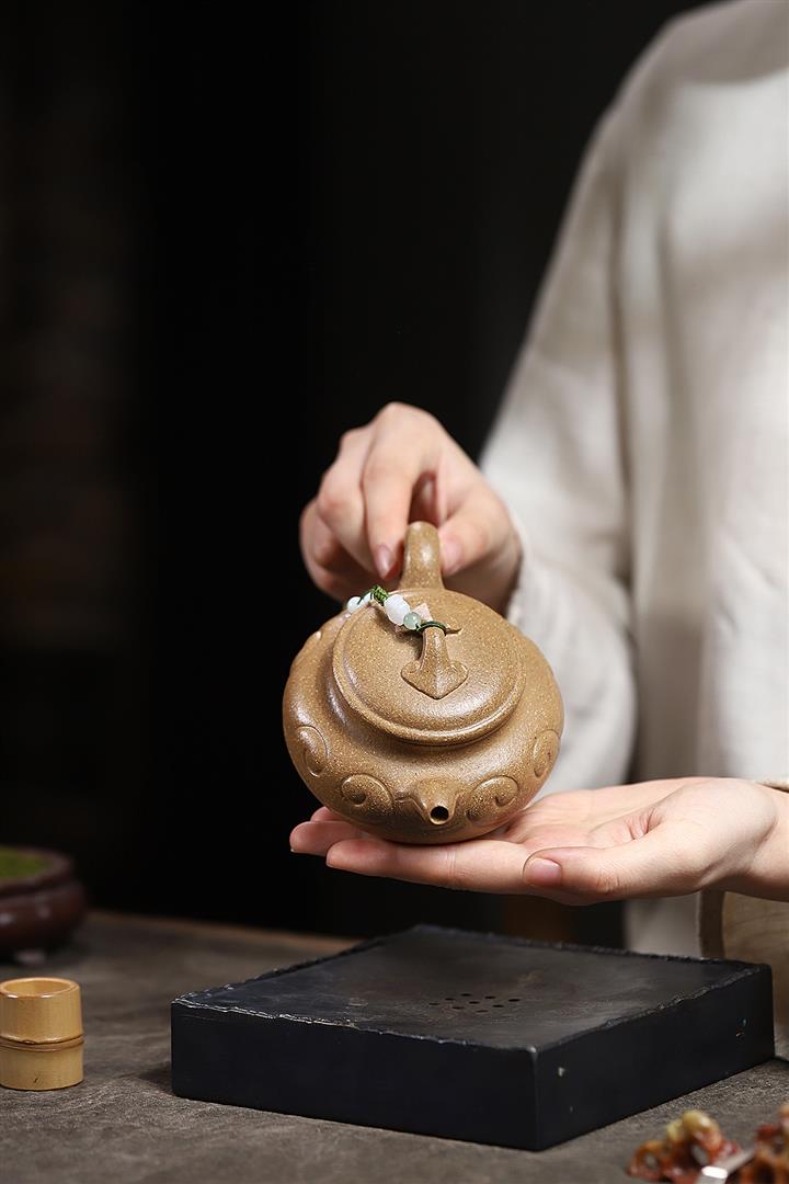 【泥料特點】砂土氣重,似淳實農民,日久使用,漸露鋒芒,養成變化,溫潤莊重。紫砂是壹種雙重氣孔結構的多孔性材質,氣孔微細,密度高。用紫砂壺沏茶,不失原味,且香不渙散,得茶之真香真味。紫砂使用越久,壺身色澤越發光亮照人,氣韻溫雅。紫砂壺長久使用器身會因撫摸擦拭,變得越發溫潤光澤。