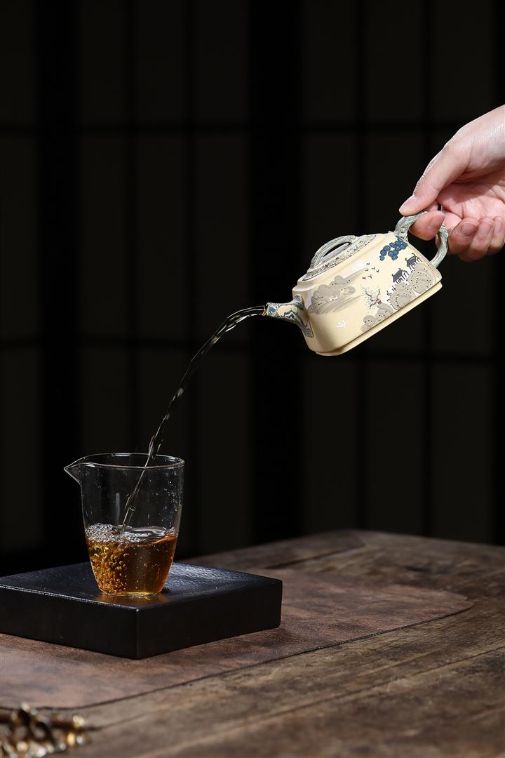 【泥料特點】砂土氣重,似淳實農民,日久使用,漸露鋒芒,養成變化,溫潤莊重。紫砂是壹種雙重氣孔結構的多孔性材質,氣孔微細,密度高。用紫砂壺沏茶,不失原味,且香不渙散,得茶之真香真味。紫砂使用越久,壺身色澤越發光亮照人,氣韻溫雅。紫砂壺長久使用器身會因撫摸擦拭,變得越發溫潤光澤。